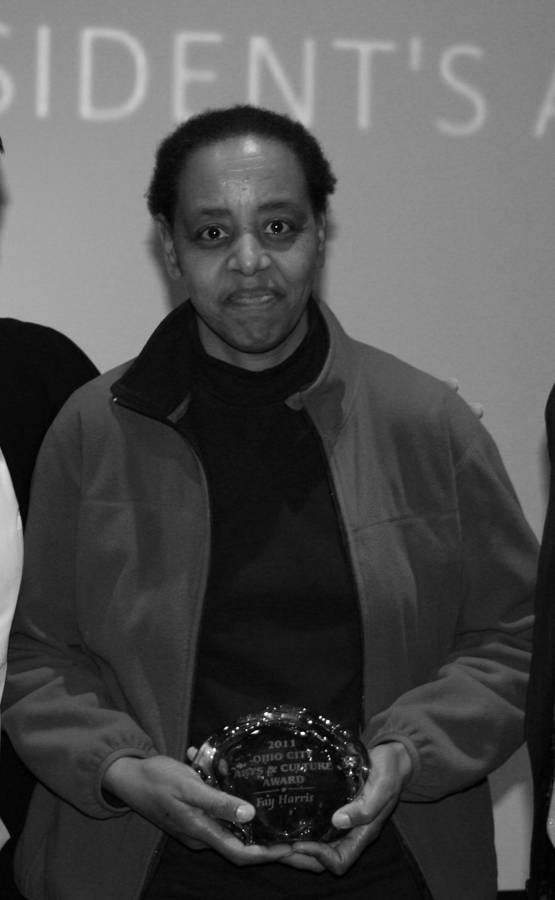 Ohio City Board Member Fay Harris accepted an Arts and Cultural Award for her efforts to bring snowflake lights to decorate W. 25h Street near the West Side Market for the Christmas season.