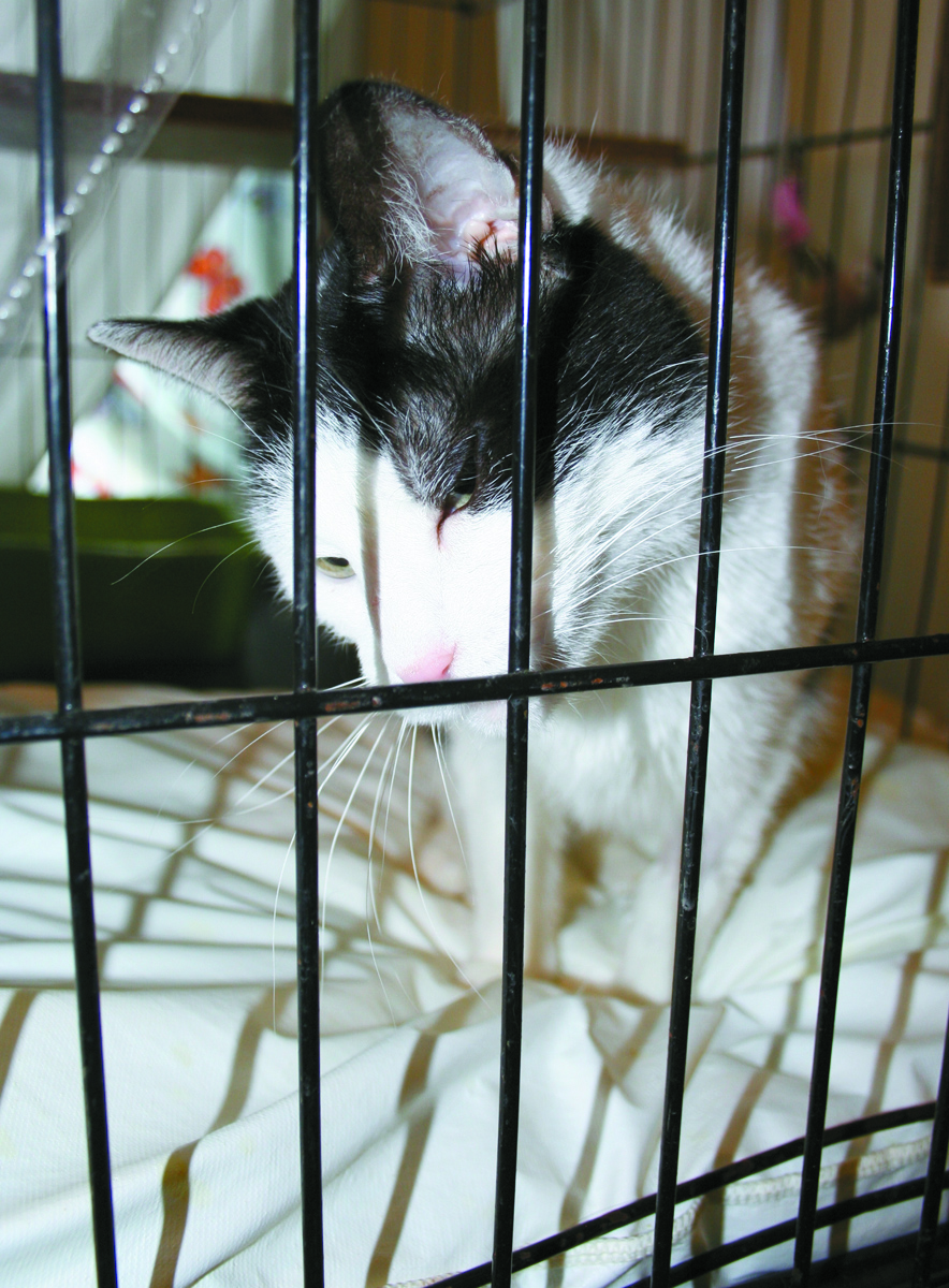 PHOTO BY DEBBIE SADLON Saturday, January 19, 2013; Tails From the City’s cat shelter, Near West Side of Cleveland: Davina, one of the original 106 cats rescued from a hoarding situation on the Near West Side, comes to the front of her cage to check out visitors to the shelter.