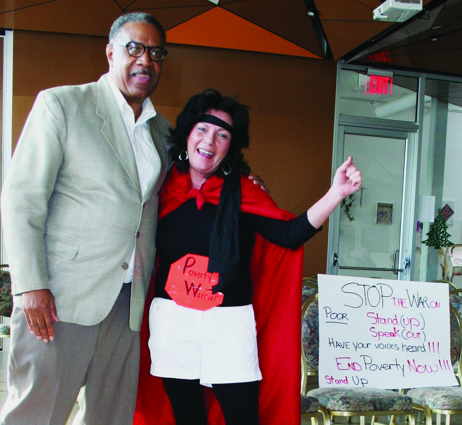 Wednesday, January 8th; Rally for New War on Poverty, Lutheran Metropolitan Ministry, 4515 Superior Avenue: Poverty Warrior Rowena Ventura with Lutheran Metropolitan Ministry’s Advocacy Director Reverend Tony Minor. Ventura rose from a coffin symbolizing the resurrection of the War on Poverty.
