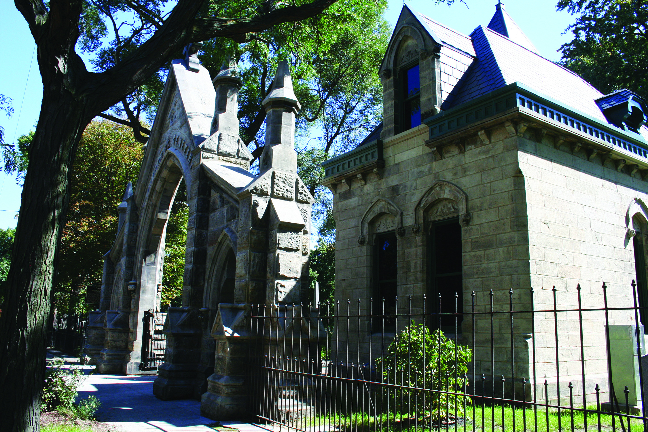 Saturday, September 27th, 2014; Monroe Street Cemetery, 3207 Monroe, the gateway arch at Monroe St. Cemetery: On Sunday September 21st Friends of Monroe Cemetery celebrated the restoration of the gatehouse at the cemetery.