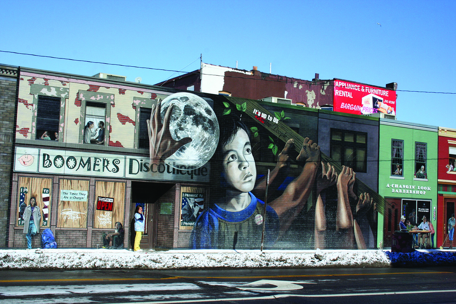Friday, February 20, 2015; Side of Medical office building on Clark Avenue at W. 25th Street: This mural, Its Up to Us by artist John Rivera-Resto, was cited by Clark Avenue planners as an example of what they would like to see more of in the La Villa Hispaña section of Clark Avenue