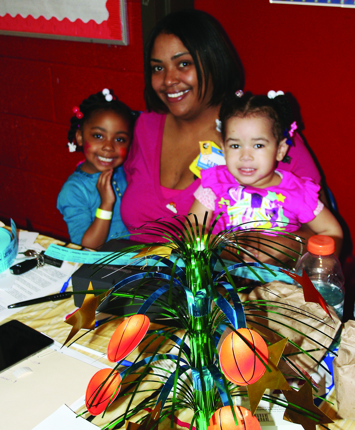 Saturday, April 18,2015; Hoops for Children’s Miracle Network, Luis Munoz Marin School gymnasium, 1701 Castle Ave: Walmart employees participate in a three-on-three basketball tournament to raise money for the Children’s Miracle Network. Carmen Perez, an associate at the Steelyard Walmart takes tickets at the door with help from I’Liyana Johnson, age 2, and Qiard Hudson, age 4.
