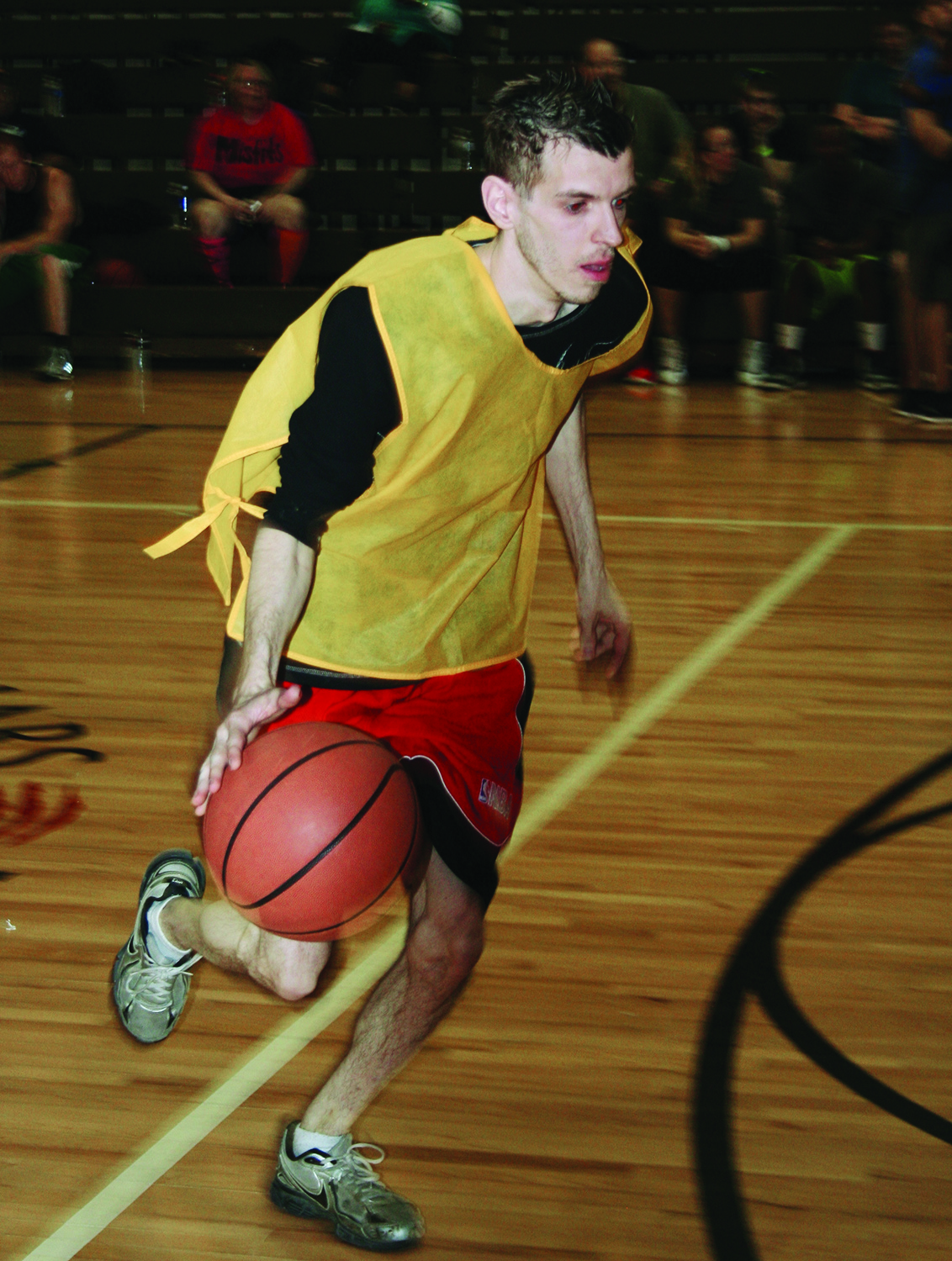 Saturday, April 18, 2015; Hoops for Children’s Miracle Network, Luis Munoz Marin School gymnasium, 1701 Castle Ave: A Walmart employee participates in a three-on-three basketball tournament to raise money for the Children’s Miracle Network. The competition raised over $3,000 for the charity, which will directly benefit Rainbow Babies and Children Hospital patients and their families.