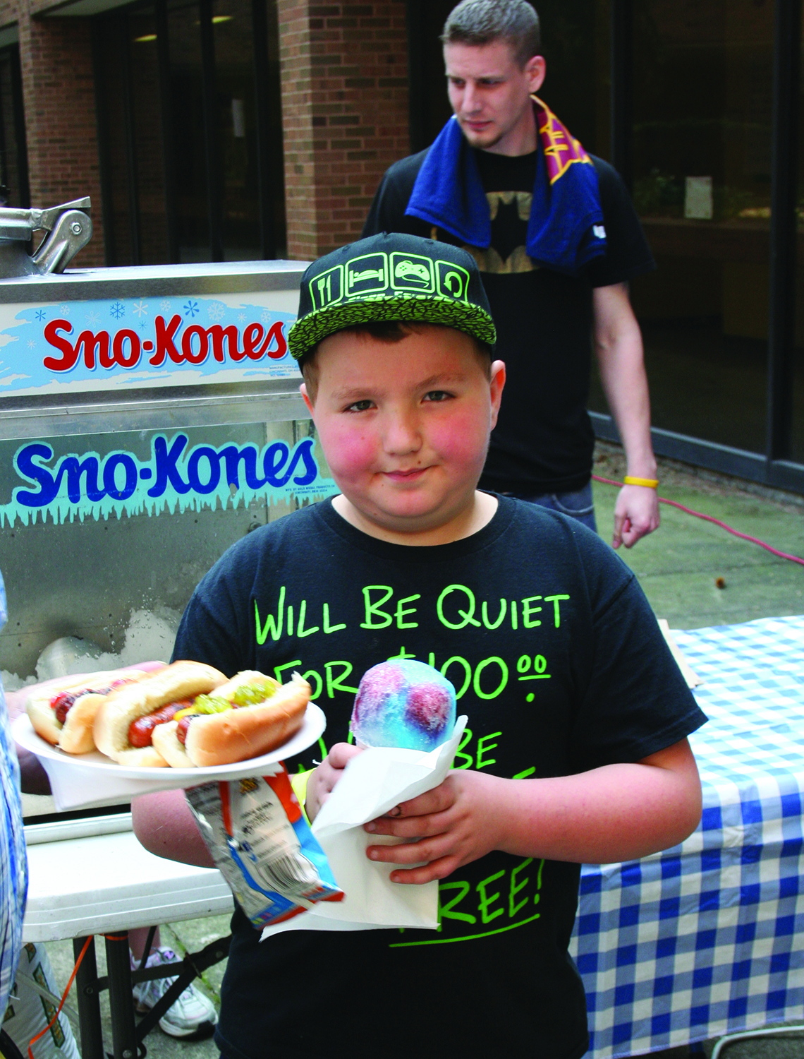 Saturday, April 18, 2015; Hoops for Children’s Miracle Network, Luis Munoz Marin School gymnasium, 1701 Castle Ave: Walmart employees participate in a three-on-three basketball tournament to raise money for the Children’s Miracle Network. Kyle Padgett, age 8, of Wadsworth, Ohio, enjoys a snow cone.
