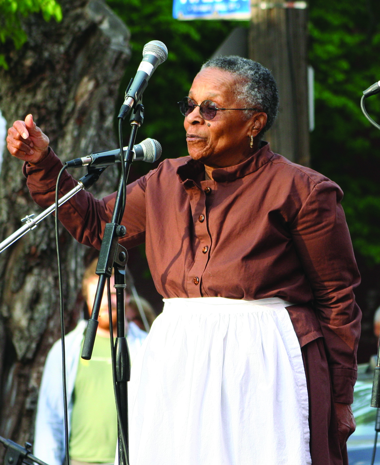 Saturday, May 9, 2015; Station Hope Block Party, St. John’s Church, Church Avenue between W. 26 and W. 28: Joan Southgate tells the audience of the role of Cleveland, which had the code name “Hope”, in the Underground Railroad that “brought freedom seekers to freedom.” Southgate brought attention the history of the Underground Railroad by walking the 519-mile route from Ripley, Ohio to St. Catherine’s Ontario in 2002 at age 73. The Underground Railroad, once traversed by Harriet Tubman and others as they guided those escaping slavery in the Southern United States, included St. John’s Church among the Station Hope destinations.
