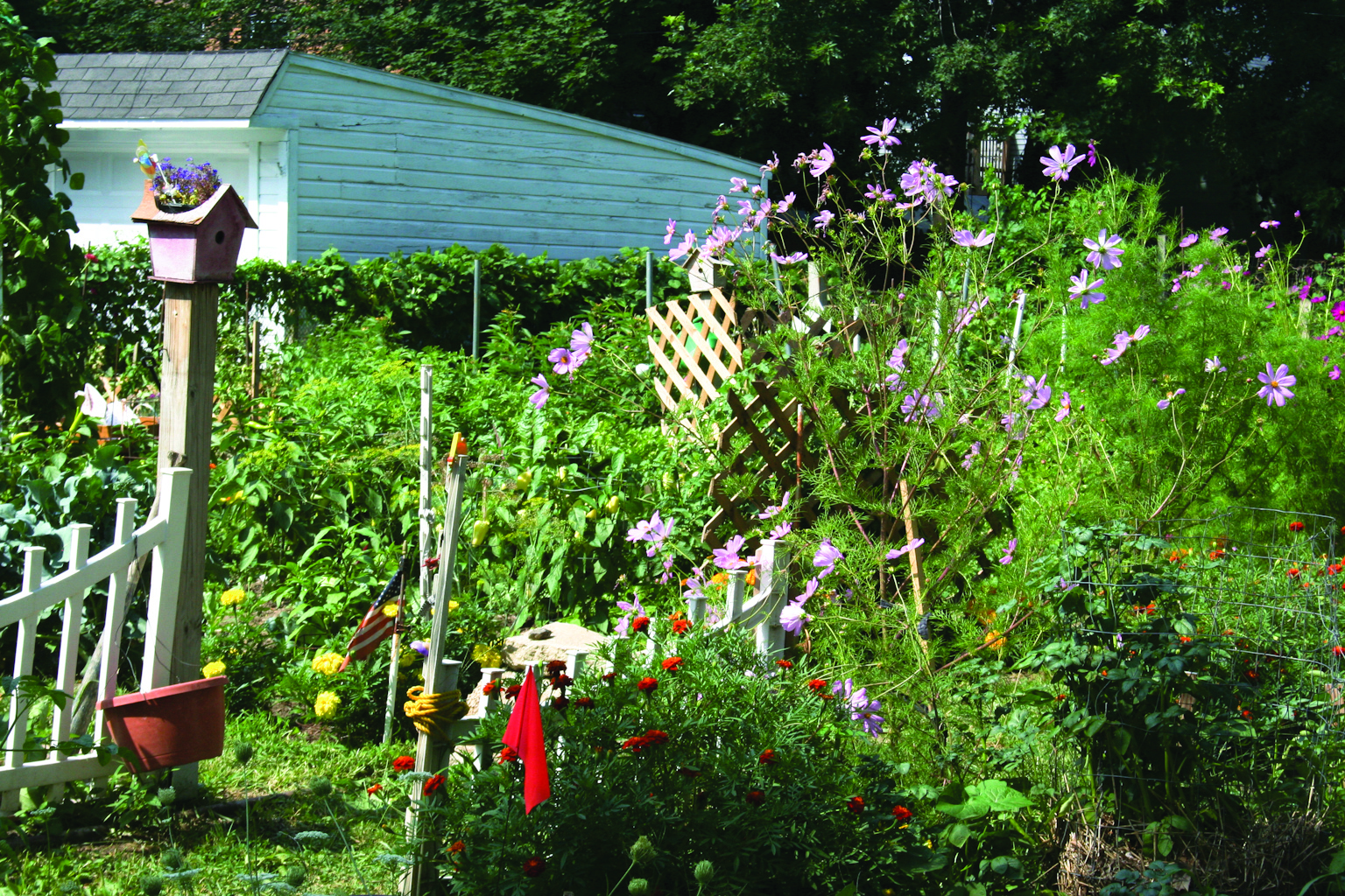 Saturday, August 8, 2015; 20th Anniversary Celebration, Bigelow Garden Site, 3164 W. 82nd Street: Flowers keep the pollinators coming to Tom Mullen’s garden.