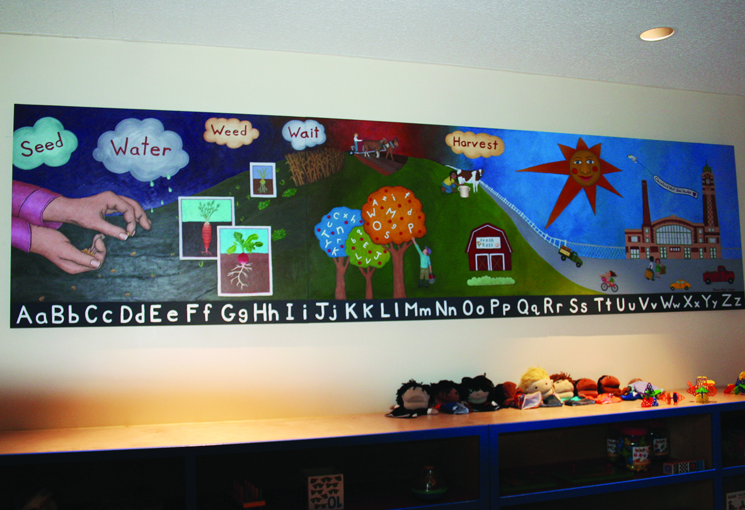 In addition to the Farmer’s Market, the Carnegie West Branch Library also redesigned its toy room. Murals in the toy room designed by Cleveland artist Jamilla Naji are designed to connect children to literacy and learning. The interactive play space is especially designed for infants and toddlers.