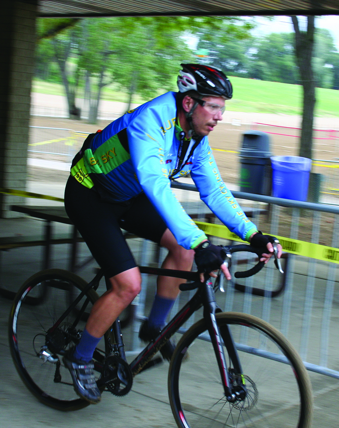 Saturday, September 12, 2015; NEOCycle, Edgewater Park: A cyclist, participating in one of the weekend bike races, pedals through the park.
