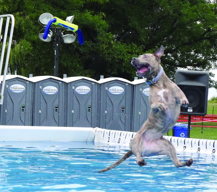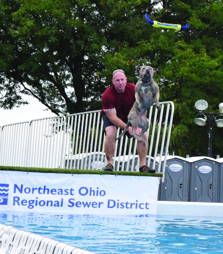 Saturday, September 8, 2018, NEOCYCLE, Edgewater Park: This dog is one of the competitors in the Ultimate Air Dogs’ dock jumping competition at a pool provided by the Northeast Ohio Regional Sewer District. The contest measures the length of each dog’s jump.