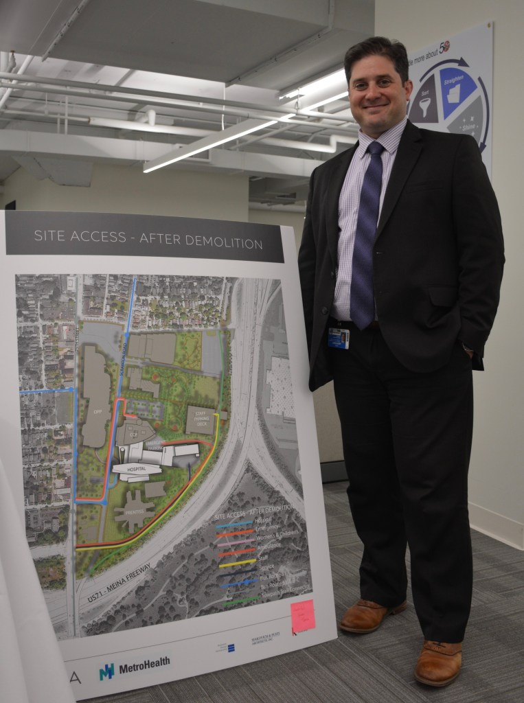 Thursday, August 15, 2019; Open House, MetroHealth Medical Center, 2500 MetroHealth Drive: Greg Zucca, Director of Economic Development and Community Transformation for MetroHealth Medical Center, stands at his station ready to explain to open house guests what neighborhood enhancements are in the works as part of the transformation plan.