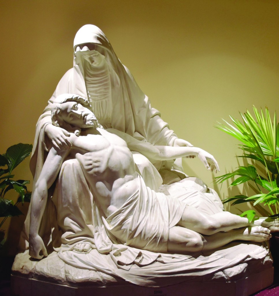 Friday, September 20, 2019; St. Malachi Church, 2459 Washington Avenue: This sculpture, a Pietá – the Virgin Mary cradling the dead body of Jesus, — was exhibited at the Chicago World Fair in 1893. Carved out of one block of wood, the sculpture was saved and restored after a fire destroyed the original St. Malachi Church on December 23, 1943. It now can be viewed in the Memorial St. Malachi Church.