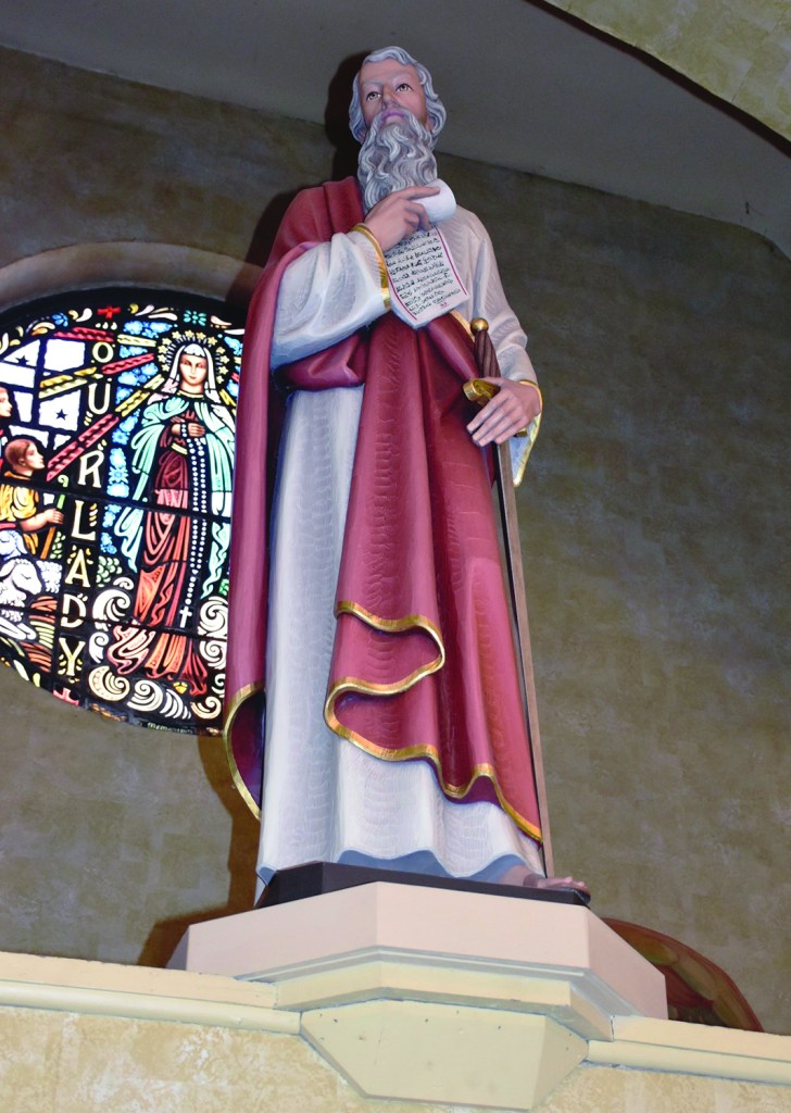Friday, September 20, 2019; St. Malachi Church, 2459 Washington Avenue: This statue of St. Paul was purchased by the congregation in 2013 in celebration of the 60th jubilee anniversary of the priesthood of former pastor Reverend Paul Hritz.
