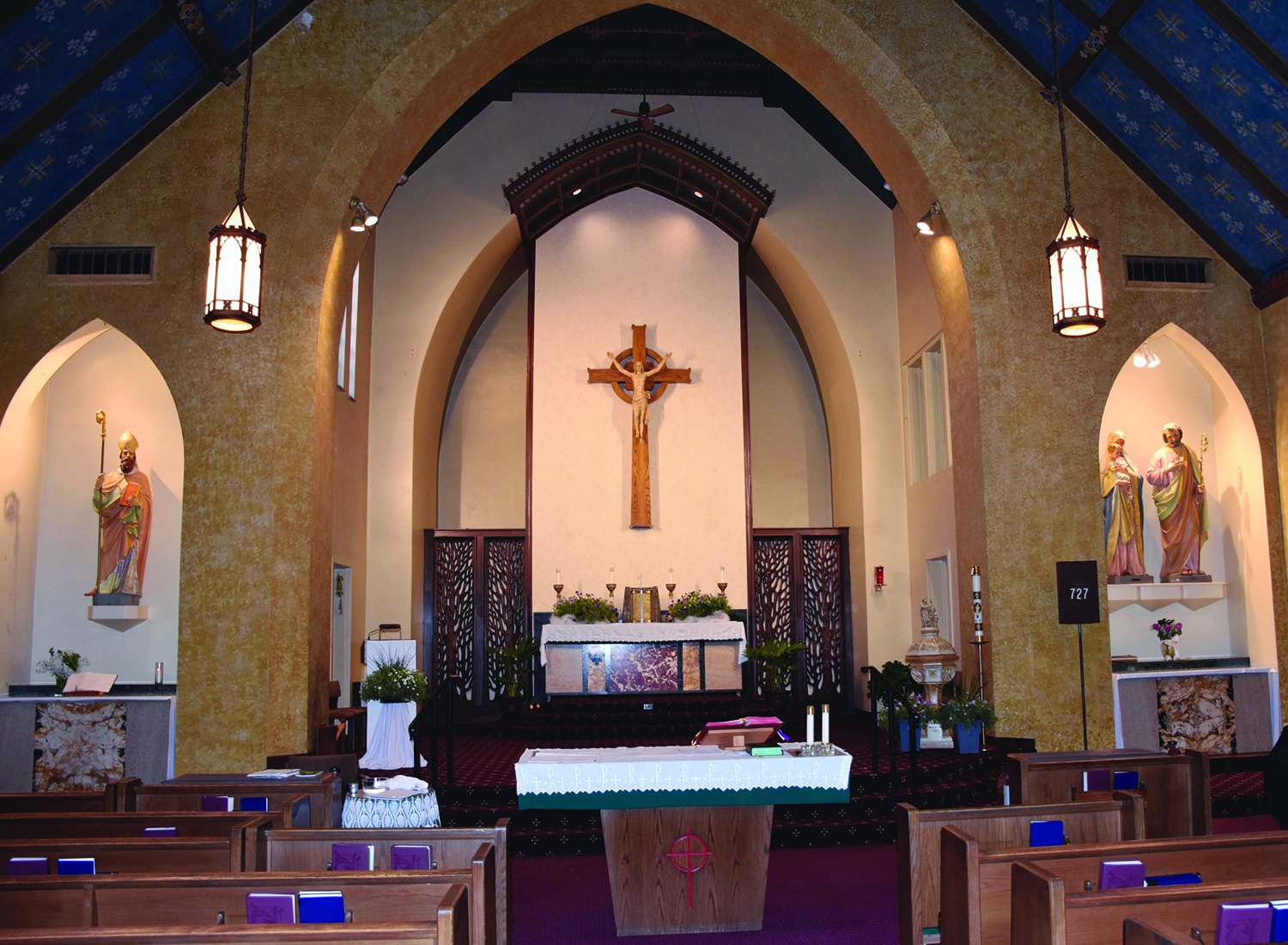 Tragedy struck the parish on December 23, 1943 when the original church caught fire. While the church building could not be saved, some of the statues and the baptismal font were rescued. When the new church was built, the parish put in stained glass windows and art that honored those who had contributed to the parish over the years. This included a window with St. Joseph to honor the men of the parish and one dedicated to St. Anne to honor the women of the parish. Windows were also dedicated to former pastors of the parish as well as a St. Ursula window dedicated to the Ursuline Nuns who taught in the parish school.