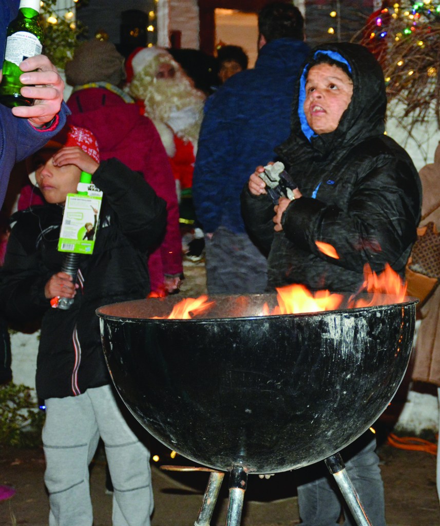 Saturday, December 7, 2019; W. 47th Street Block Club’s Miracle on 47th Street Holiday Event, W. 47th Street between Bridge and Franklin: Youths try to stay warm by the fire while visiting with Santa and enjoying the holiday cheer.