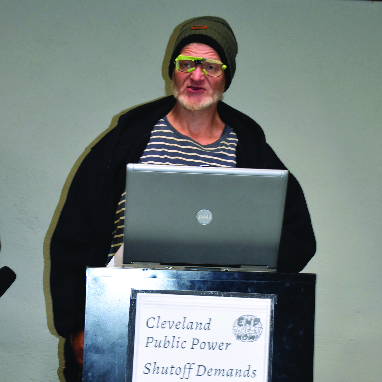 Friday, January 17, 2020; End Poverty Now Press Conference to present demands to Cleveland Public Power, 3500 Lorain Avenue: Adam Jefferson, who lives in an all-electric subsidized apartment, had his electricity shut off by Cleveland Public Power because he was unable to pay the full bill. Jefferson says on cold nights he has been going to a Metanoia Project shelter to stay warm.