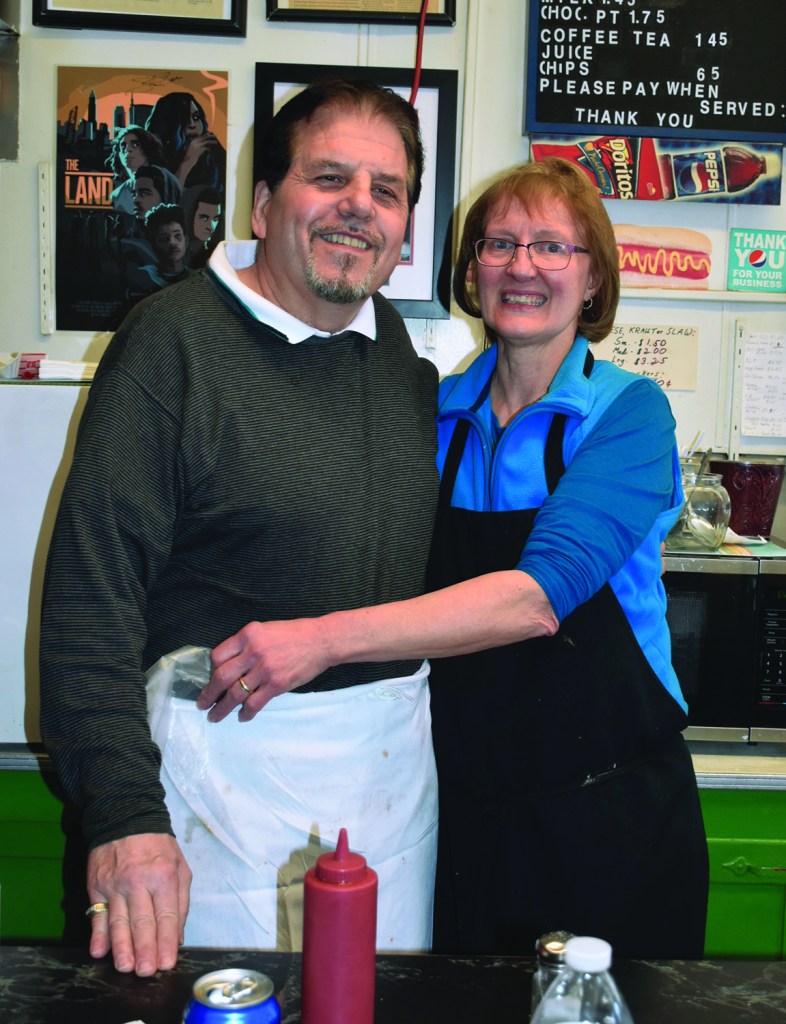 PHOTO BY CHUCK HOVEN February 21, 2020; Old Fashion Hot Dogs, 4008 Lorain Avenue: Tom and Loretta Sorma, owners of Old Fashion Hot Dogs since 1987, behind the counter where they have served up many hot dogs with the works over the years. The building that houses their business was sold in October of last year to make way for a new apartment building. Loretta says they will be closing the business on March 29th. Tom says they plan to retire. Prior to their purchase of the business, Emanuel “Mike” and Irene Vasiliou, ran the business which was then called the Hot Dog Inn. Hot dogs have been sold at this location since 1928.