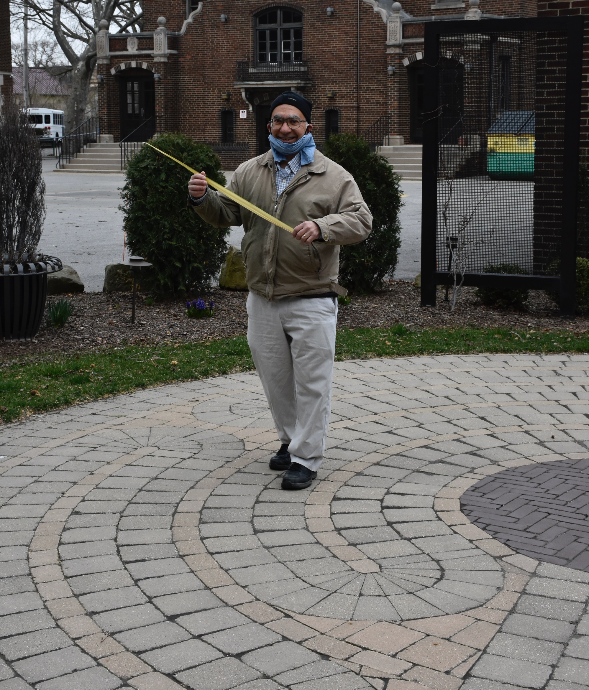 Palm Sunday, April 5, 2020; St. Wendelin Parish, Columbus Road: Plain Press Managing Editor Chuck Hoven does his own Palm Sunday Procession walking the prayer labyrinth at St. Wendelin Parish grounds while holding some palms picked up at St. Rocco’s Church.