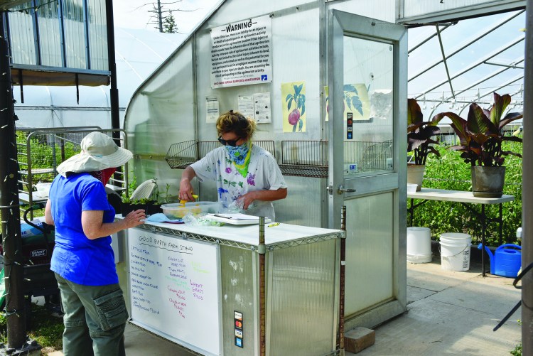 Monday, June 15, 2020; Good Earth Farm Stand, 9600 Madison Avenue: Jeanette Toms helps a customer at her Good Earth Farm Stand. The stand is open Mondays and Thursdays from 3-7 p.m. and Saturdays from noon to 4 p.m. Good Earth Farm participates in ProducePERKS, matching up to $20 for purchases of fresh produce.