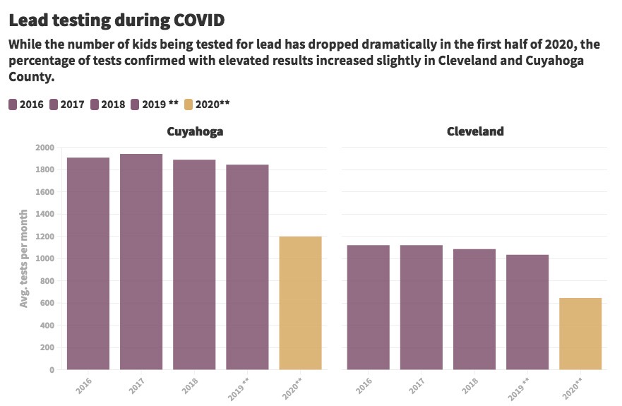 Tests for lead have plummeted by almost half compared with previous years in Cleveland and across Ohio, driven mostly by a dip in March, when most pediatricians’ offices and labs were closed to non-emergency visits because of the pandemic.