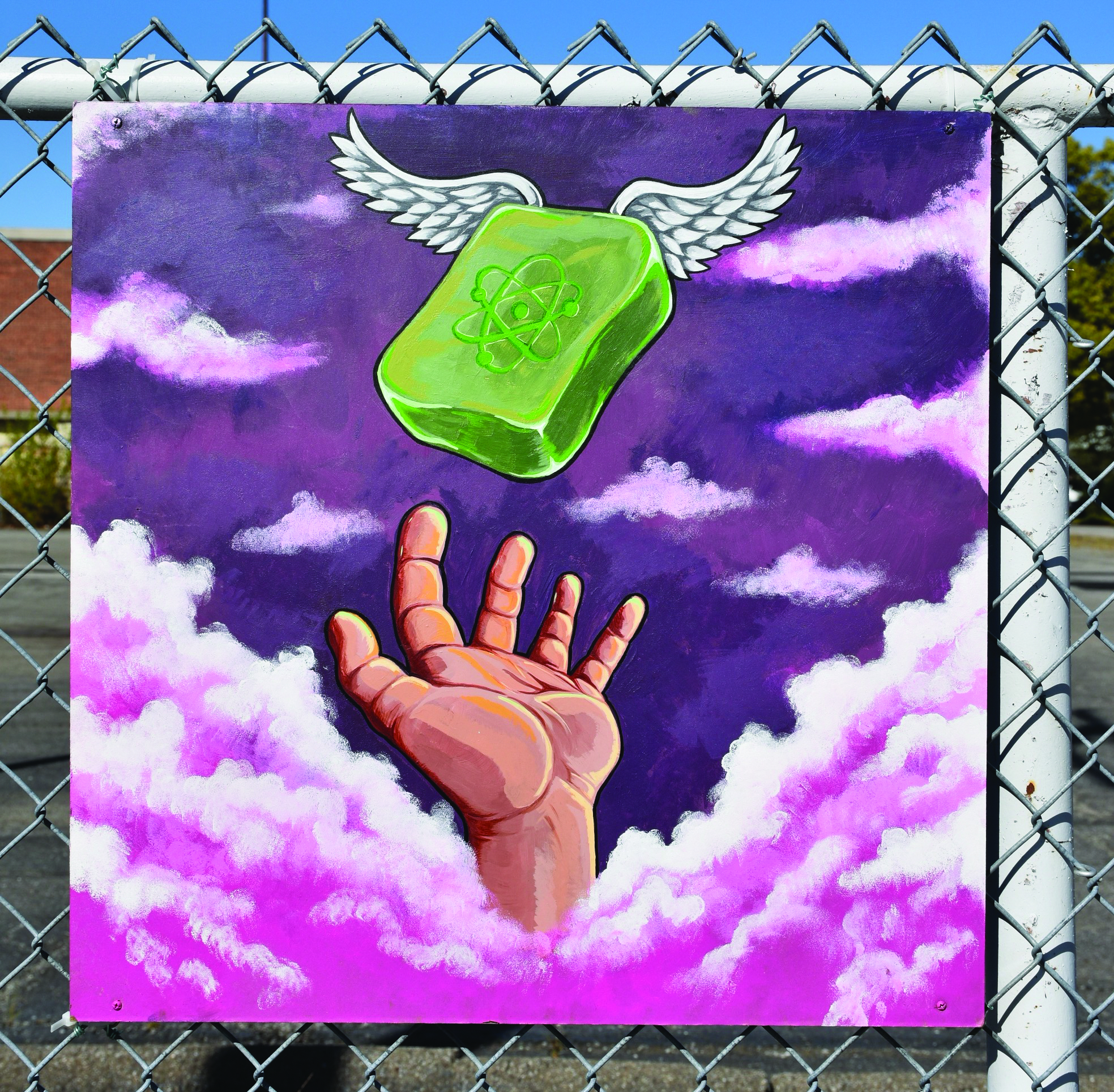 Saturday, October 17, 2020; Art at A Distance, temporary art exhibit of the work of eleven local artists in response to their experiences with Coronavirus (COVID-19) pandemic, W. 30th and Meyer: Artwork by Kevin Fernandez Colon. Art at a Distance, a part of Creative Fusion, an artist in residency program funded by Cleveland Foundation, displays the work of eleven artists on the fences of Lincoln West High School and Meyer Pool until November 21st. Artists displaying work in the exhibit are: Devon Iris, Kevin Fernandez Colon, Kristen Newell, Gilberto Rivera Jr., Jen Craun, Emily Splain, Hector Castellanos, Mark Yasenchack, Elaine Hillihen, Alicia Vasquez, Kubra AlHilali.