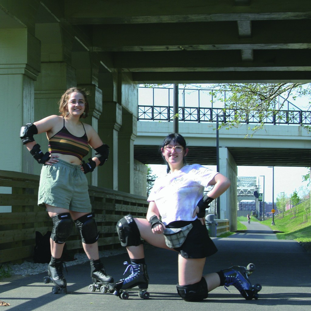 Wednesday, May 19, 2021; Red Line Greenway by the W. 25th RTA Rapid Station: (L-R) Gabby Fernandez and Mimi Thompson enjoy roller skating on the new trail.