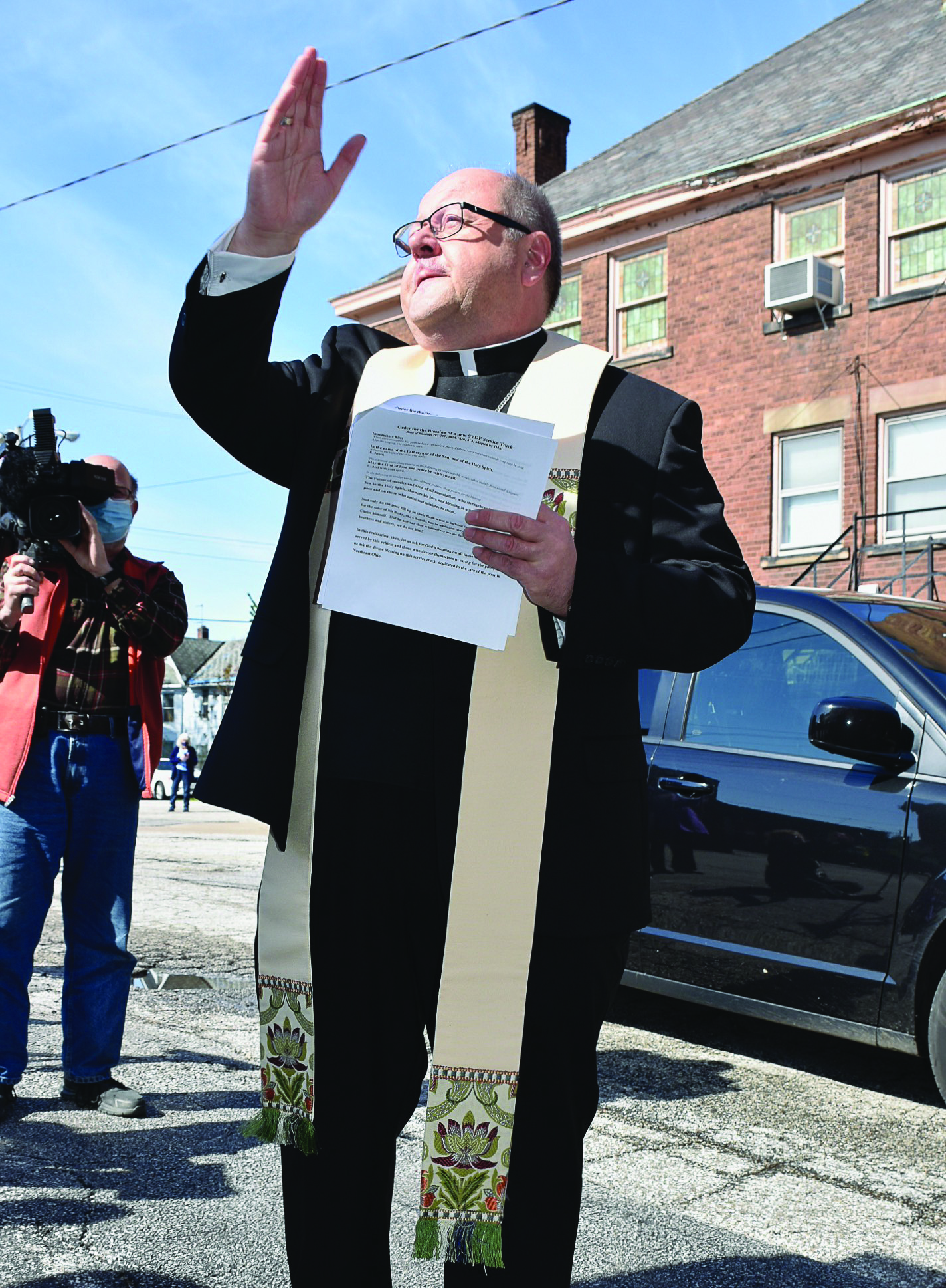 Monday, May 10, 2021; Blessing of new St. Vincent de Paul Society Box Truck, Brookside Hunger Center, Pearl & Archwood: Cleveland Catholic Diocese Bishop Edward Malesic blesses the St. Vincent de Paul Society’s (SVDP) new box truck.