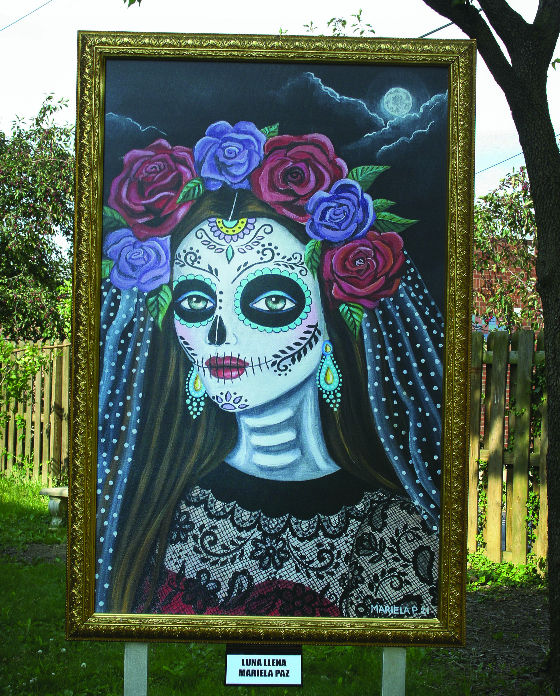 PHOTO BY GREG ROSENBERG Friday, June 18, 2021; Julia de Burgos Cultural Arts Center, 2800 Archwood Avenue: This artwork titled Luna Llena by Mariela Paz is one of several artworks on display on the grounds of the Julia de Burgos Cultural Arts Center.