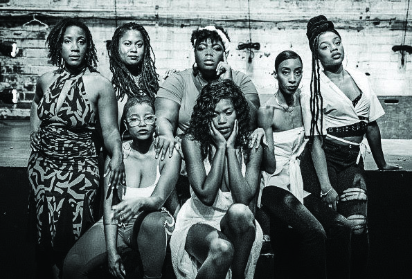 Promotional photo for Cleveland Public Theatre’s workshop production of Panther Women: An Army for the Liberation by India Nicole Burton. Pictured: (clockwise from left) Maya Nicholson, Chennelle Bryant-Harris, DayShawnda Ash, Courtney Black, De’Aja Mona’e, Mary-Francis R. Miller, and Khemi Shalahuddin. Cleveland Public Theatre kicked off its 2021 Free Summer Season on its outdoor stage with an early July run of Panther Women: An Army for the Liberation. The play follows the stories of three prominent women, who were members of the Black Panther Party and Black Liberation Movement and explores the lives and unique experiences of Black Women in America.