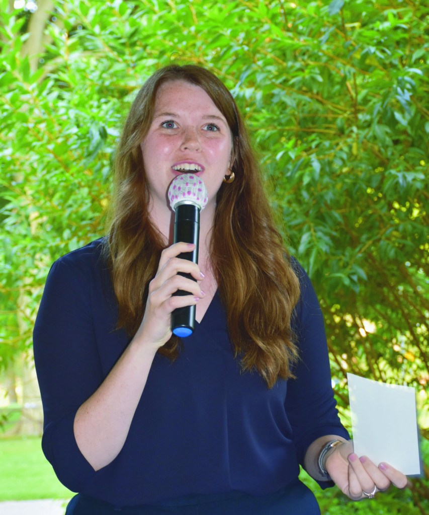 Tuesday, July 27, 2021; The Council of Cleveland Neighborhoods’ Cleveland Mayoral Candidates’ Forum, Edgewater Park upper-level pavilion: Jessica Trivisonno, representing mayoral candidate Justin Bibb, answers a question presented by the moderator.