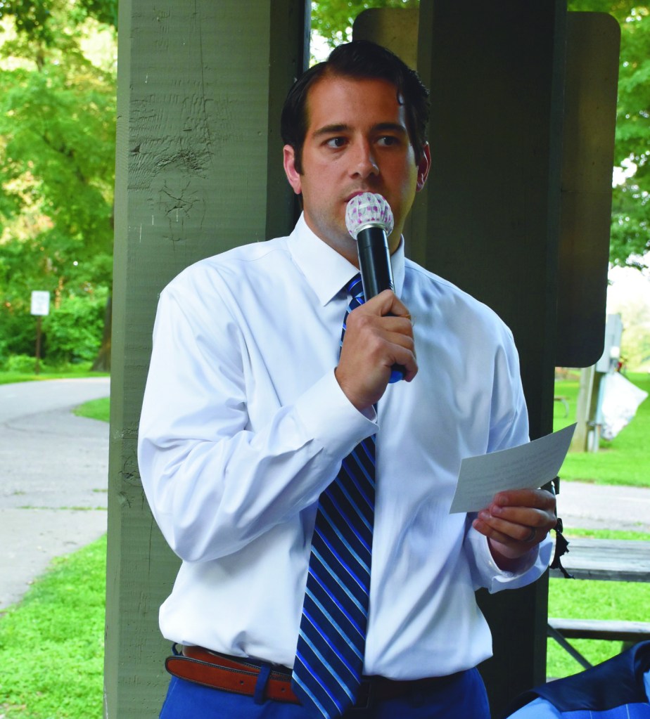 Tuesday, July 27, 2021; The Council of Cleveland Neighborhoods’ Cleveland Mayoral Candidates’ Forum, Edgewater Park upper-level pavilion: Mayoral candidate Ross DiBello explains his position on a question posed by members of the Council of Cleveland Neighborhoods.