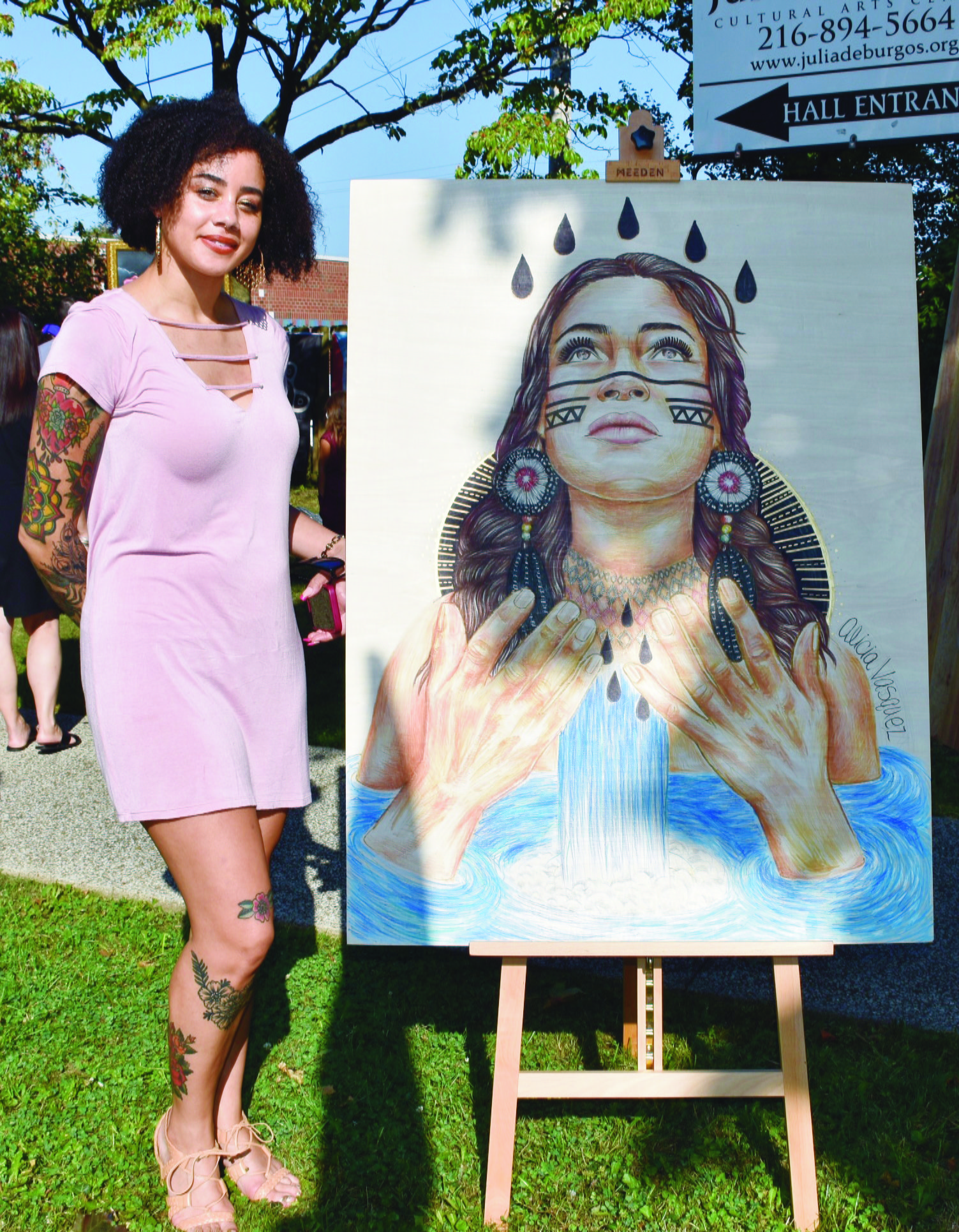 Saturday, September 18, 2021; Celebration of Hispanic Heritage, Julia de Burgos Cultural Arts Center, 2800 Archwood Avenue: This artwork, by artist Alicia Vasquez is named Water, Life and Earth, in honor of a poem by the same name by Puerto Rican poet and activist Julia de Burgos. Vasquez says she uses real life LatinX models for her work.