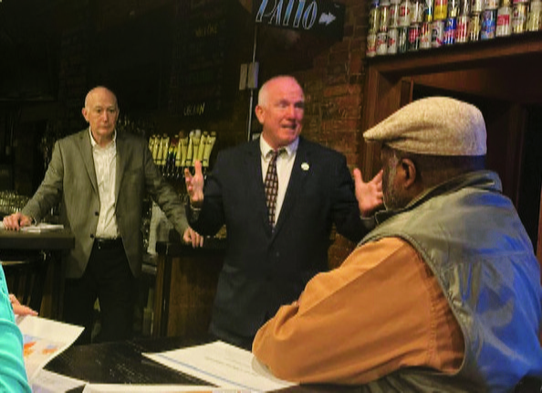 Monday, November 8, 2021; Lincoln Heights Block Club Meeting, Tremont Taphouse, 2572 Scranton Road: L to R: Michael Chambers, Cuyahoga County Fiscal Officer; Martin J. Sweeney, County Councilman representing District 3; and Randy Norfus.