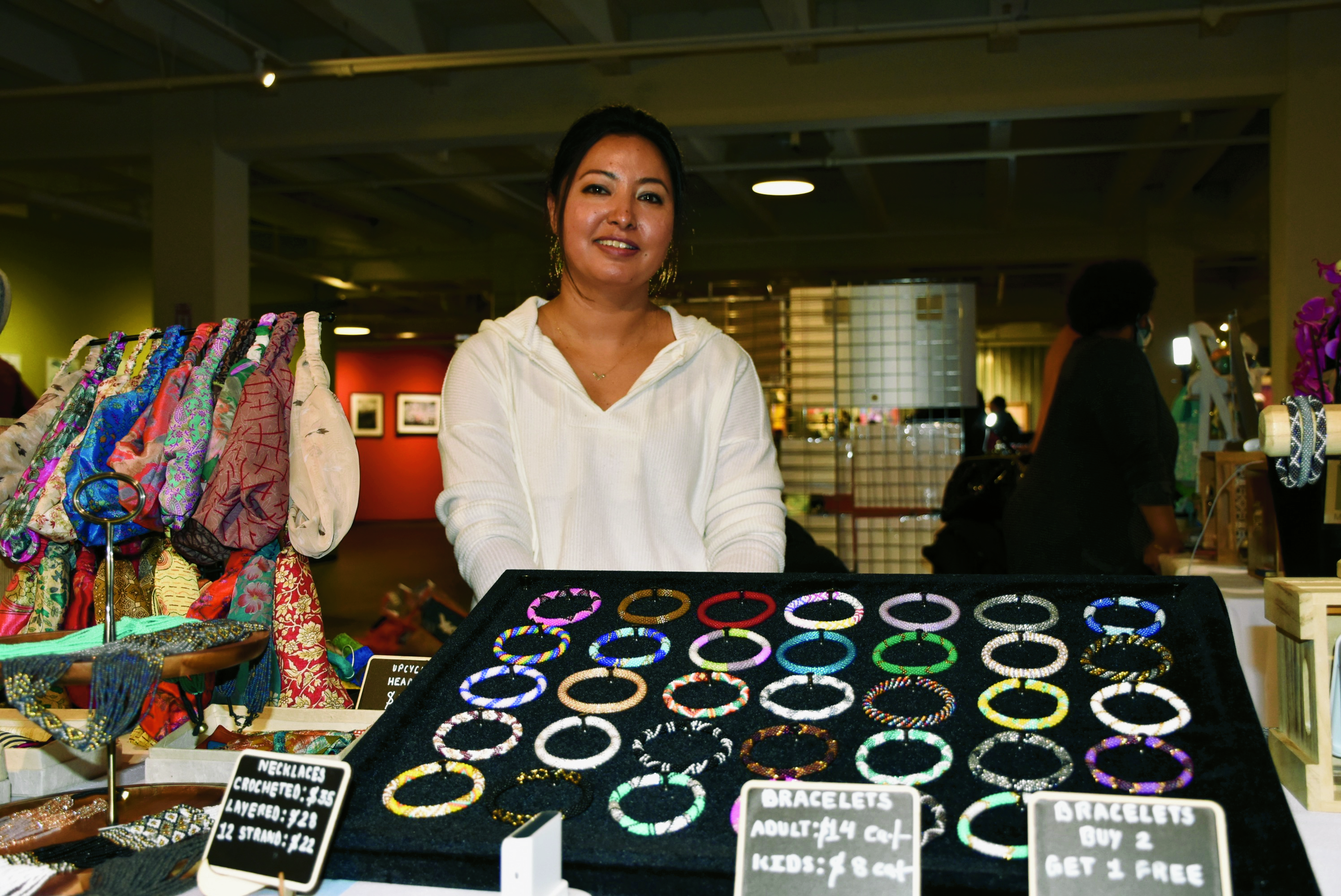Friday, February 18, 2022; Third Friday at W. 78th Street Studios, 1300 W. 78th Street: Arpan Shrestha, the owner and manager of Nepali Artisans, sells homemade products from Nepal. Shrestha says she regularly has a stand at W. 78th Street Studios on “Third Fridays”.