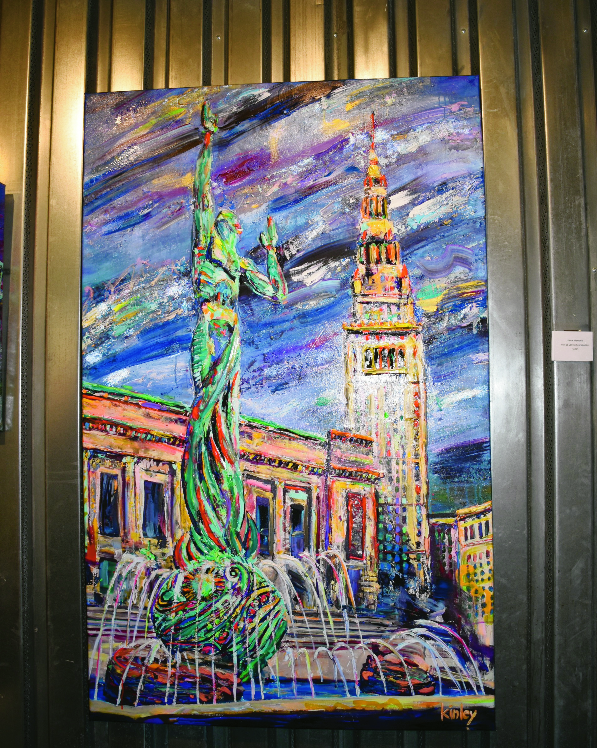Friday, February 18, 2022; Third Friday at W. 78th Street Studios, 1300 W. 78th Street: This cityscape, a canvas reproduction on display by Kinley Studio, is titled Peace Memorial.