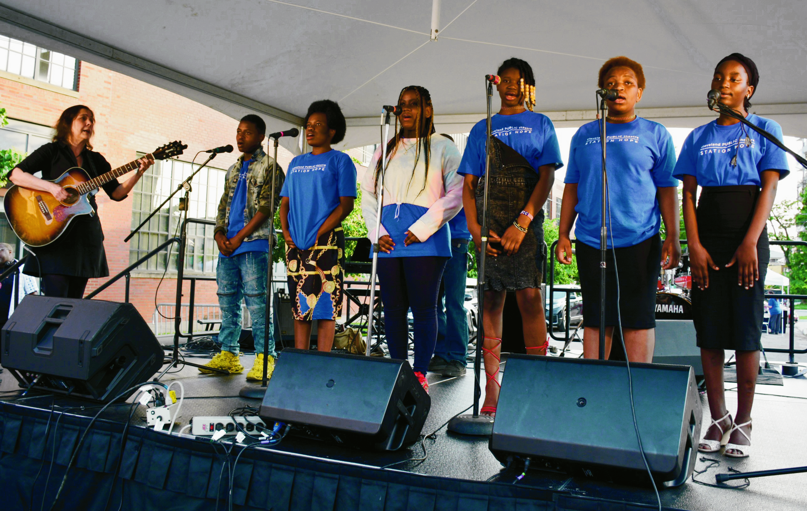 Saturday, May 28th, 2022; Cleveland Public Theatre’s Station Hope 2022; on grounds of St. John’s Episcopal Church, an authenticated stop on the Underground Railroad, at 2600 Church Avenue: This student from Thomas Jefferson International Newcomers Academy was one of the singers in a group from the school performing at Station Hope. (See related photo on page 7)