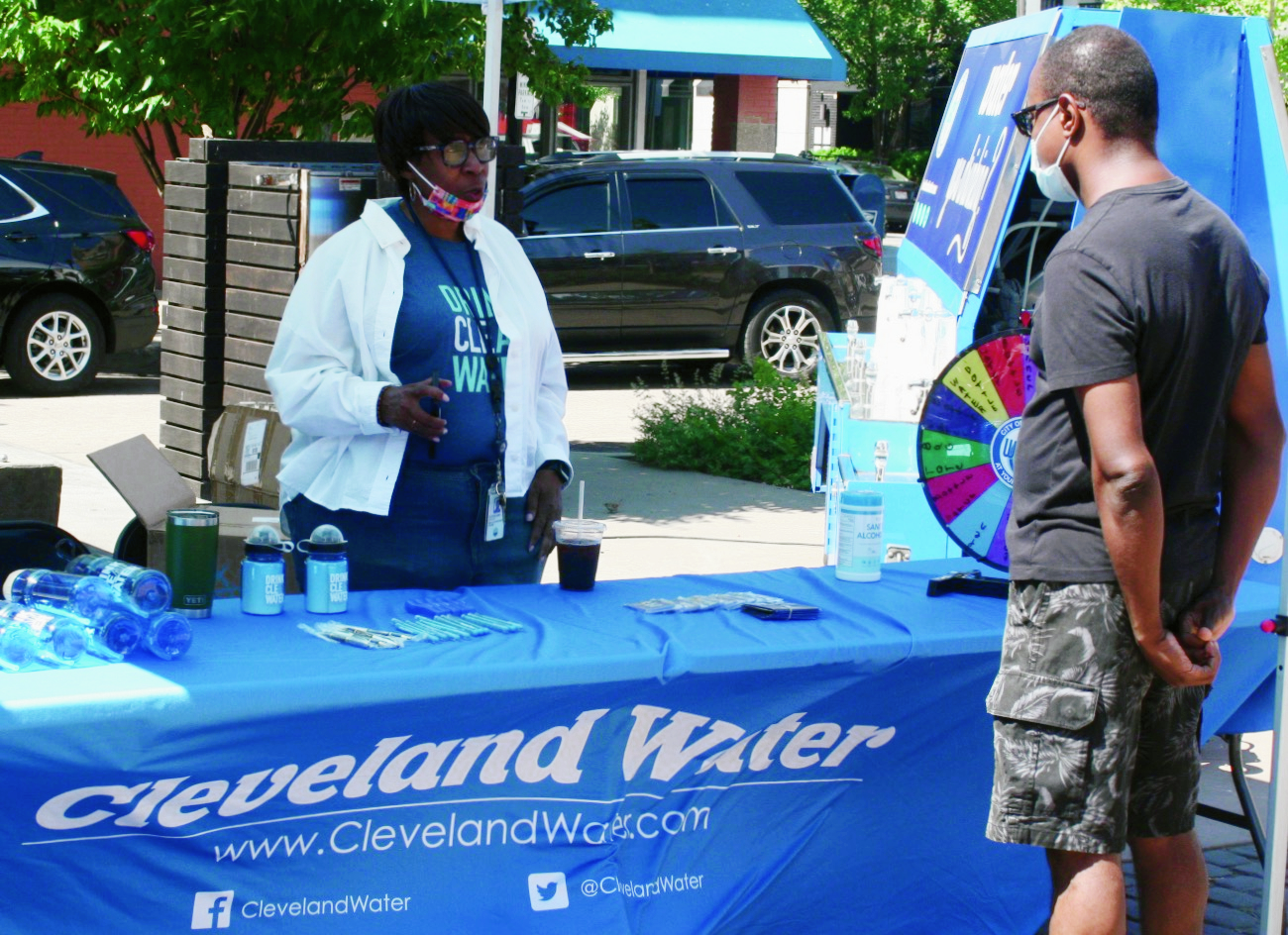Thursday, July 14, 2022; Summer Resource Fair at Market Square Park, W. 25th and Lorain Avenue: Phyllis Cleveland with the City of Cleveland Department of Water has guests spin for prizes.