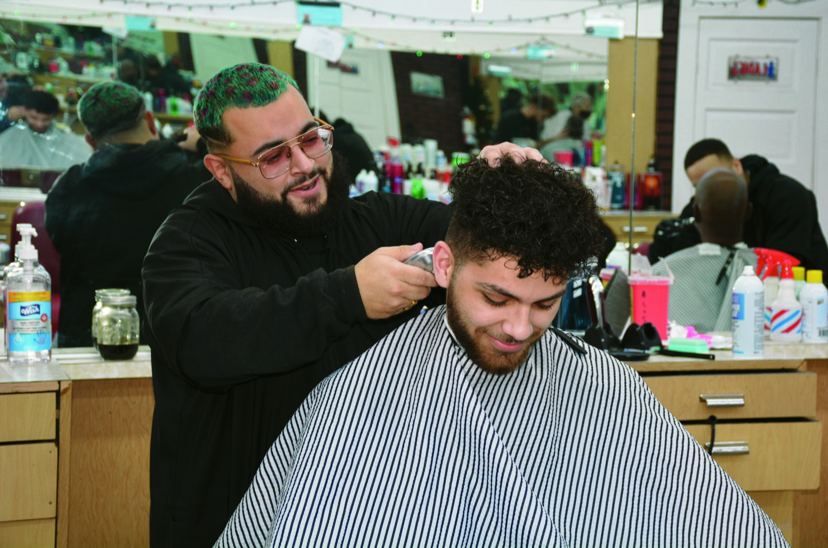 Friday, December 16, 2022; All State Barber College 2546 Lorain Avenue: Antonio Guerra, 30, practices his barber skills on fellow student Mahdi Jaber. Antonio is from the Clark-Fulton neighborhood and intends on graduating in November. When asked why he wants to be a barber, he responded, “I enjoy meeting and serving all different kinds of people.”