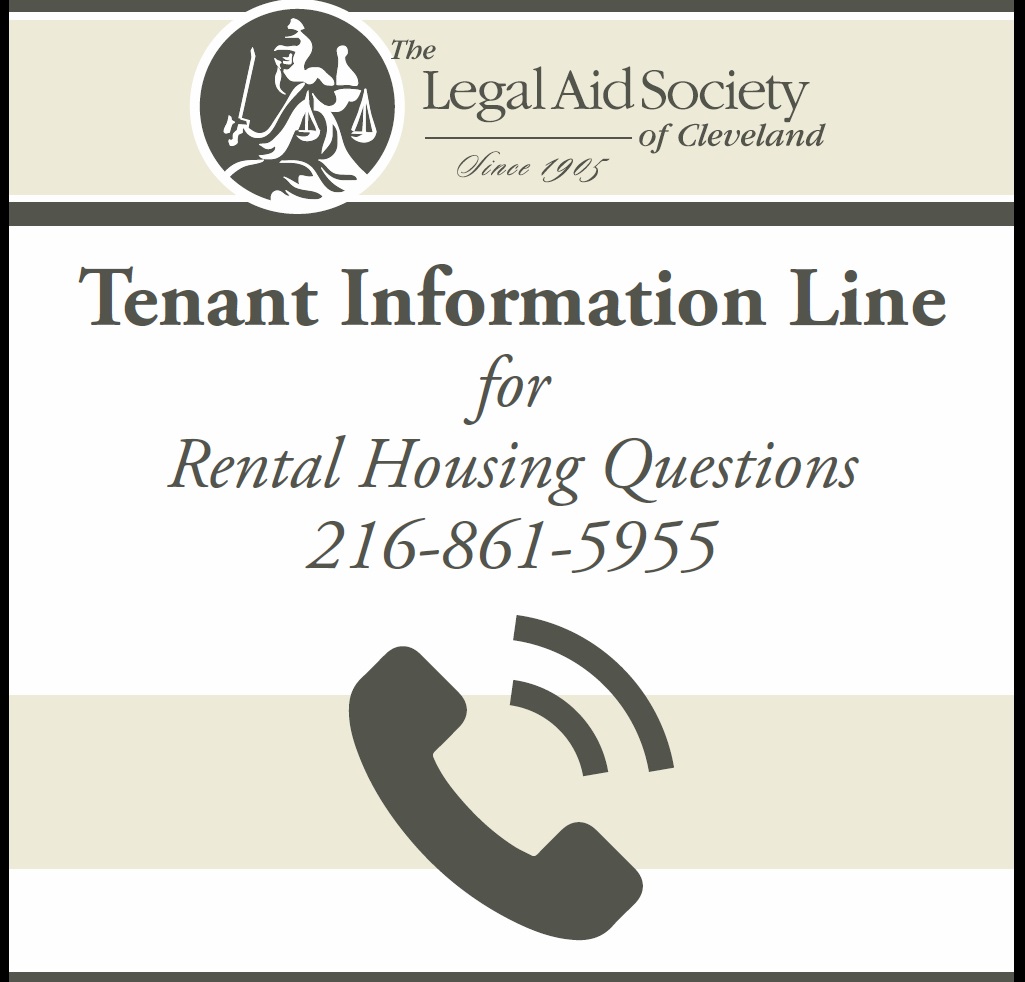 Legal Aid’s Tenant Information Line is for information only. Callers will get answers to their questions and will also receive information about their rights. Some callers may be referred to other organizations for additional help. Callers who need legal assistance may be referred to Legal Aid’s intake or a neighborhood Brief Advice Clinic. For a list of upcoming free Brief Advice Clinics dates and locations, visit lasclev.org/events. For more information about Legal Aid’s Tenant Info Line, visit lasclev.org/tenantinfoline.