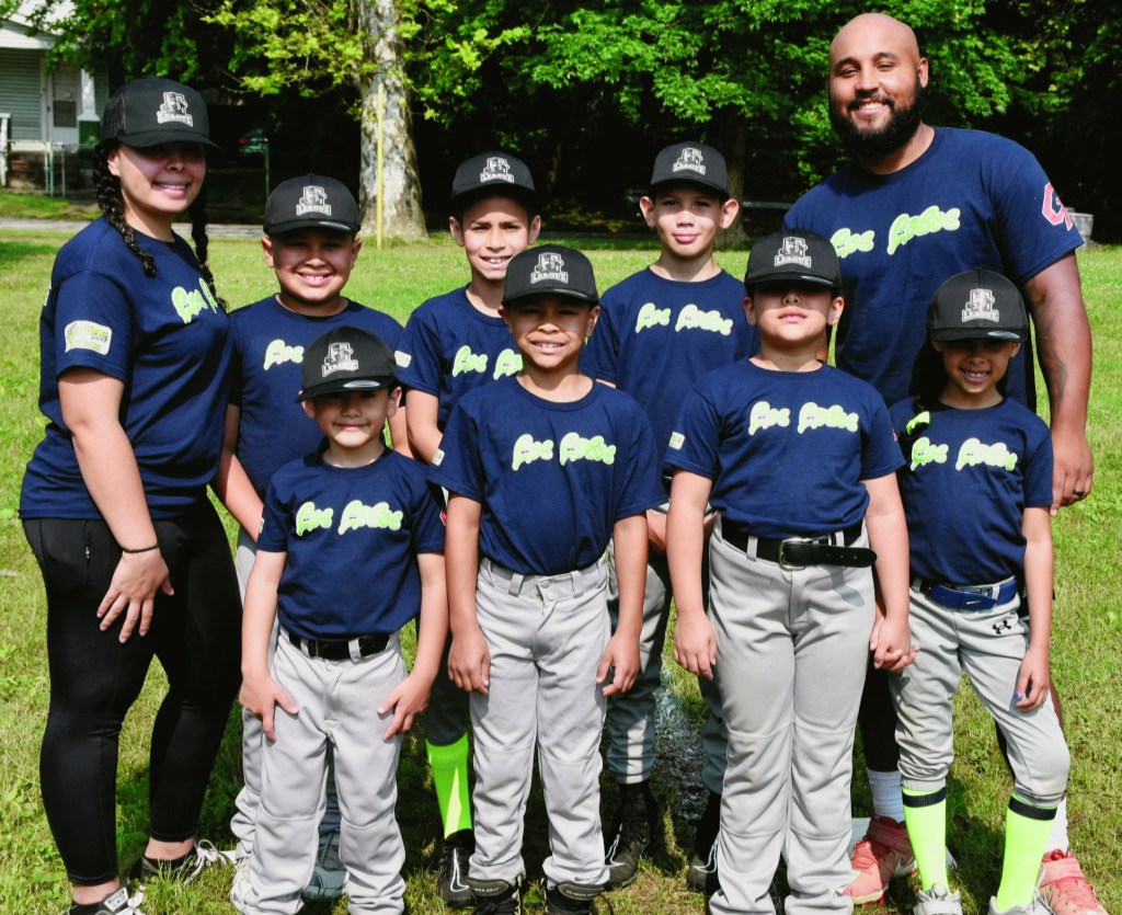 Saturday, June 17, 2023; Roberto Clemente League Saturday games; Roberto Clemente Park, 3690 Seymour Avenue: Members of the Los Lobos team and their coaches Genesis Alvarado and Jose Alvarado are ready to compete in league play in the 7-9-year-old baseball team bracket. Their opponent will be La Familia Cultura.