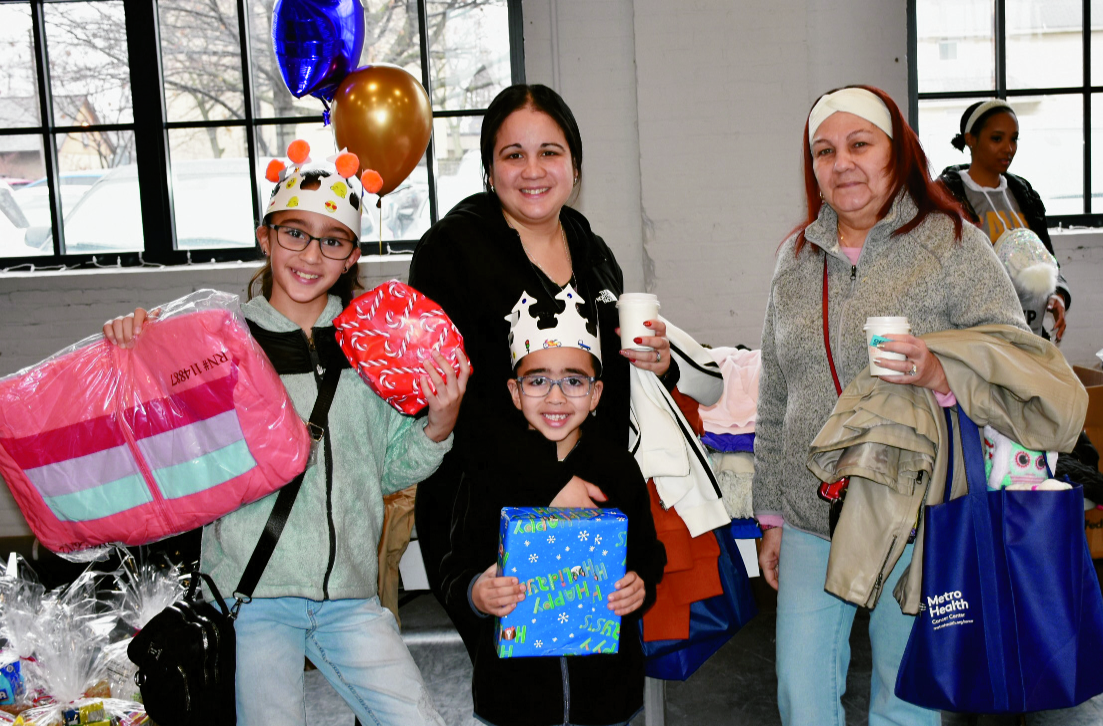 Sunday, January 7, 2024; Three Kings Day celebration, Pivot Center for Art, Dance and Expression, 2937 W. 25th Street: Gabriela Quinones, age 10, and Xavier Quinones, age 7, celebrate their new gifts. Enjoying the festivities with them are Angela Balaguer and Awilda Resto.