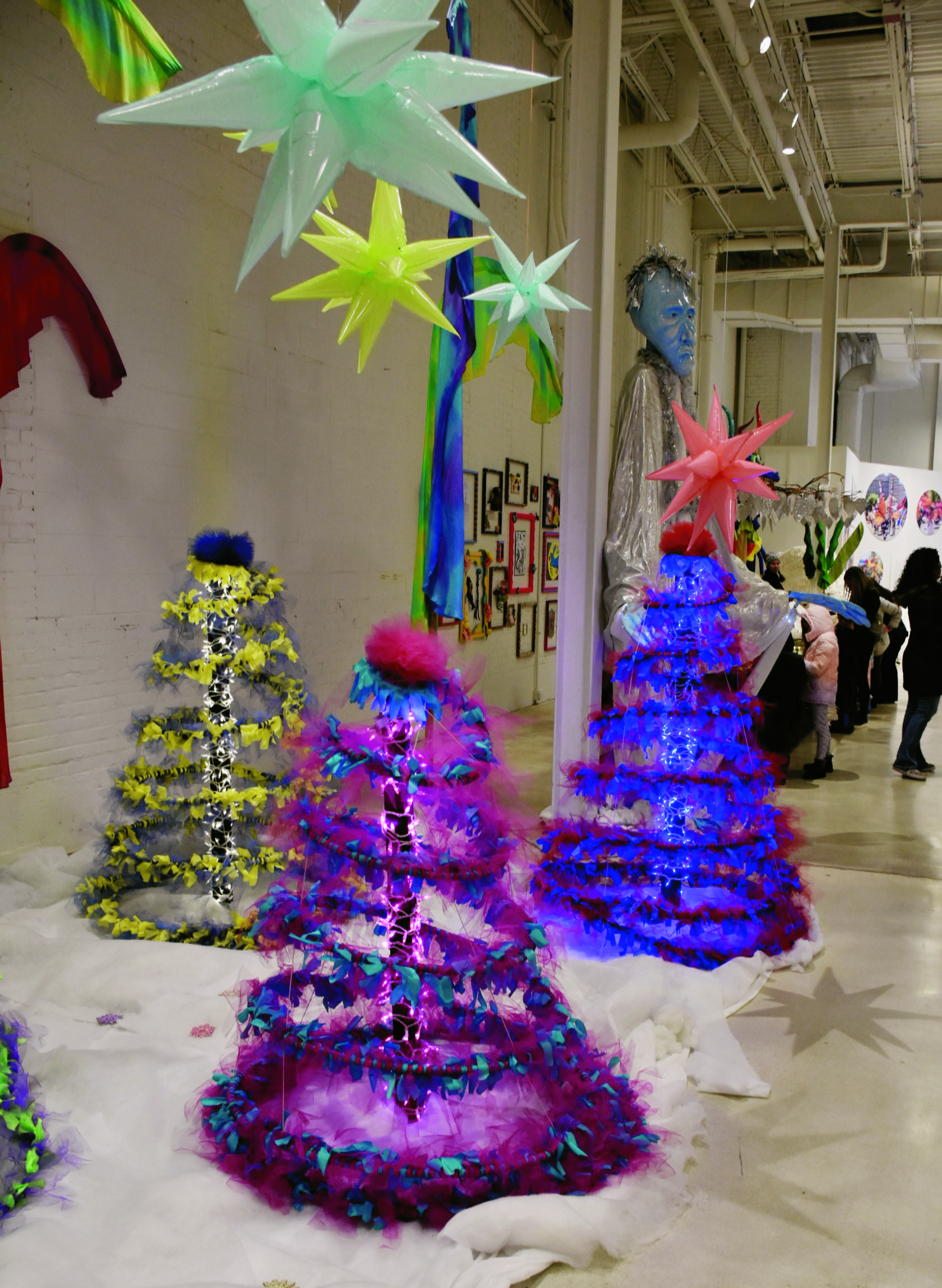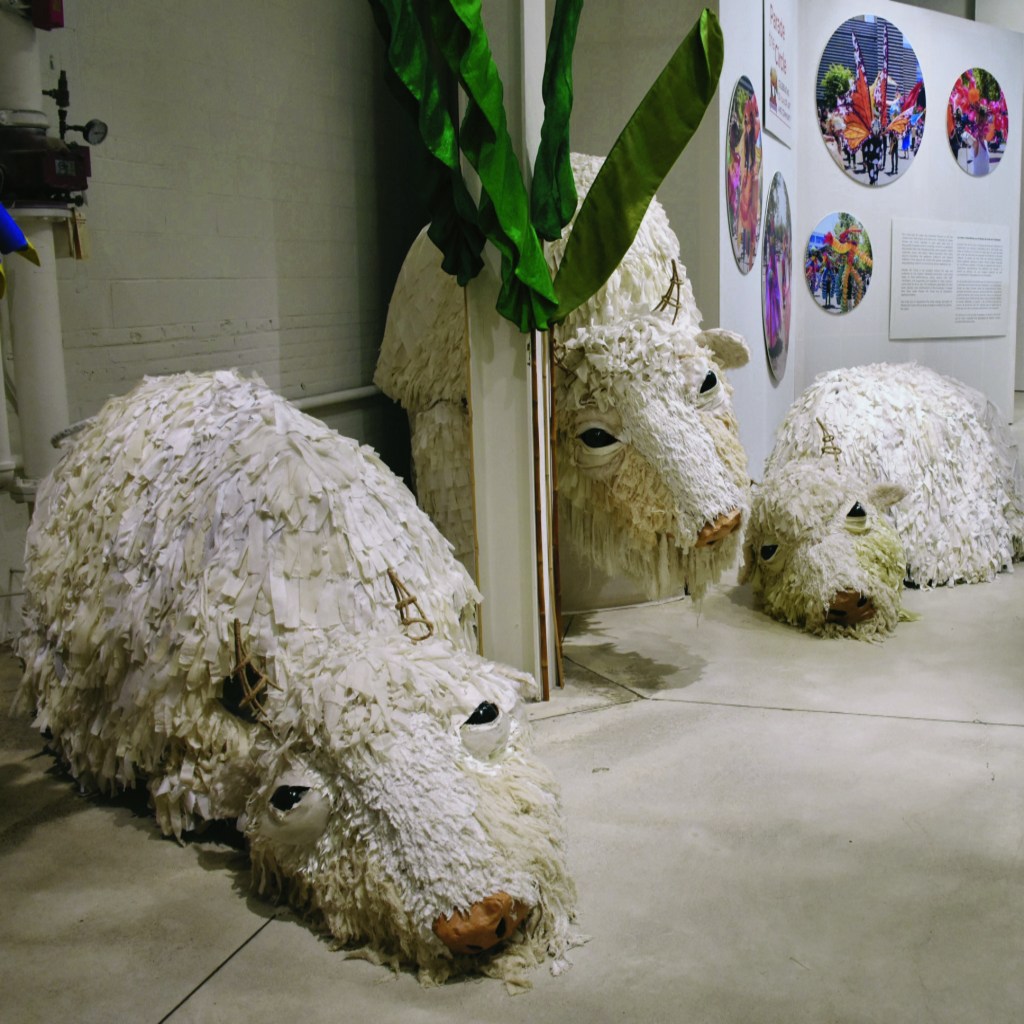 Sunday, January 7, 2024; Cleveland Museum of Art Community Arts Center at the Pivot Center for Art, Dance and Expression, 2937 W. 25th Street: The buffalos in this artwork were created by Parade the Circle guest artist Liza Goodell in 2015. The artwork titled, Grasslands, is made of coax cable, cotton, hot glue, wire, burlap, papier-mâché, and clear acrylic ornaments.