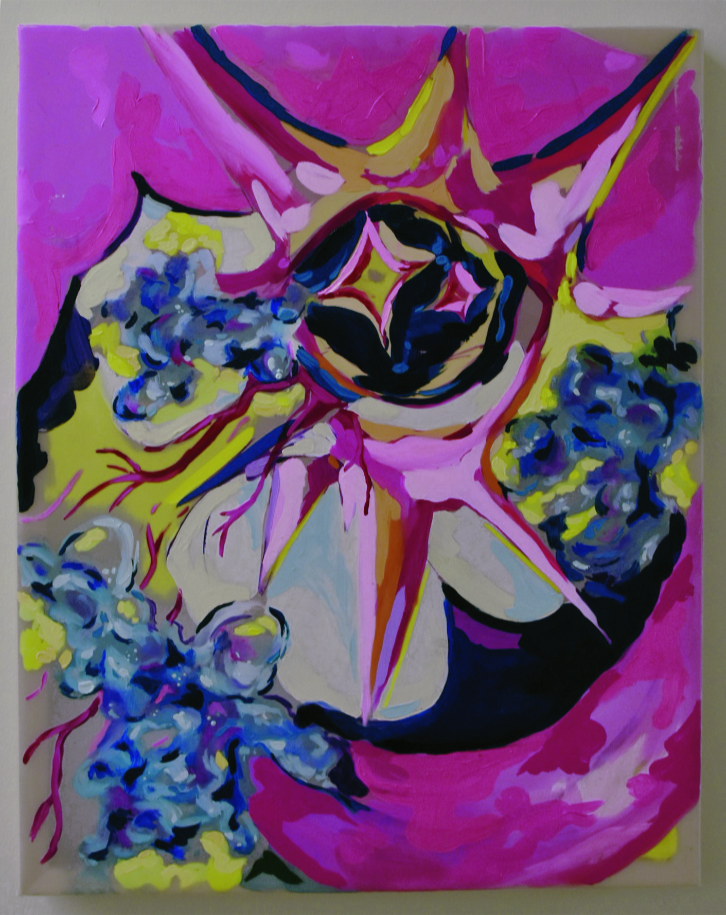 Sunday, January 7, 2024; Future Ink Graphics (FIG) Exposicion Navideña at the FIG Community Gallery at the Pivot Center for Art, Dance and Expression, 2937 W. 25th Street: An oil on Dura-lar artwork titled Mongrel Dog by artist Janol Daley.