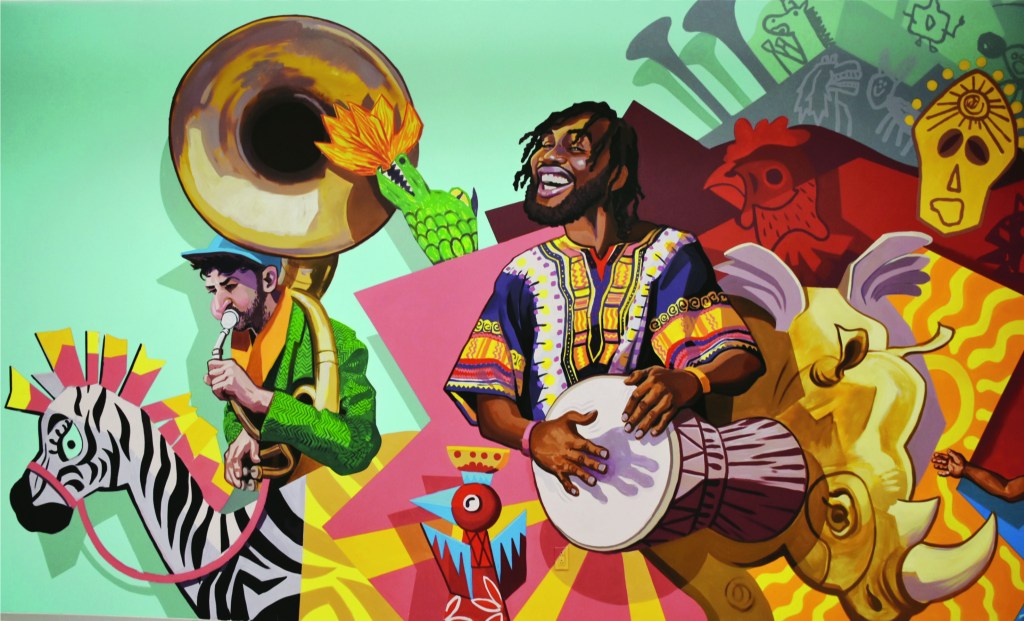 Sunday, January 7, 2024; Cleveland Museum of Art Community Arts Center at the Pivot Center for Art, Dance and Expression, 2937 W. 25th Street: Mural showing participants in Parade the Circle by artist Derek Brennan.