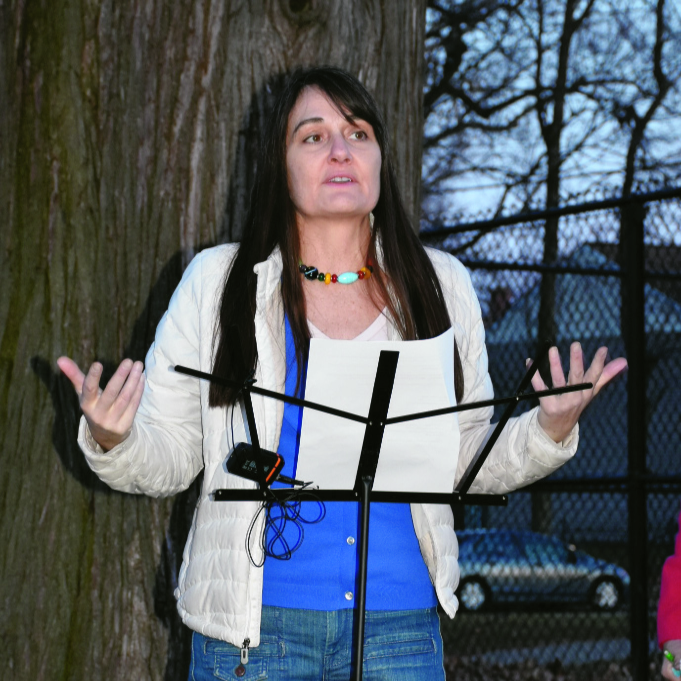 PHOTO BY CHUCK HOVENSunday, March 3, 2024; Friends of Cudell Commons Park rally and candlelight vigil, Cudell Commons Park just east of Cudell Recreation Center at Detroit Avenue and West Boulevard: Nikki Hudson, a member of Friends of Cudell Commons Park, speaks of plans to continue advocacy to save the park from becoming a school construction site.