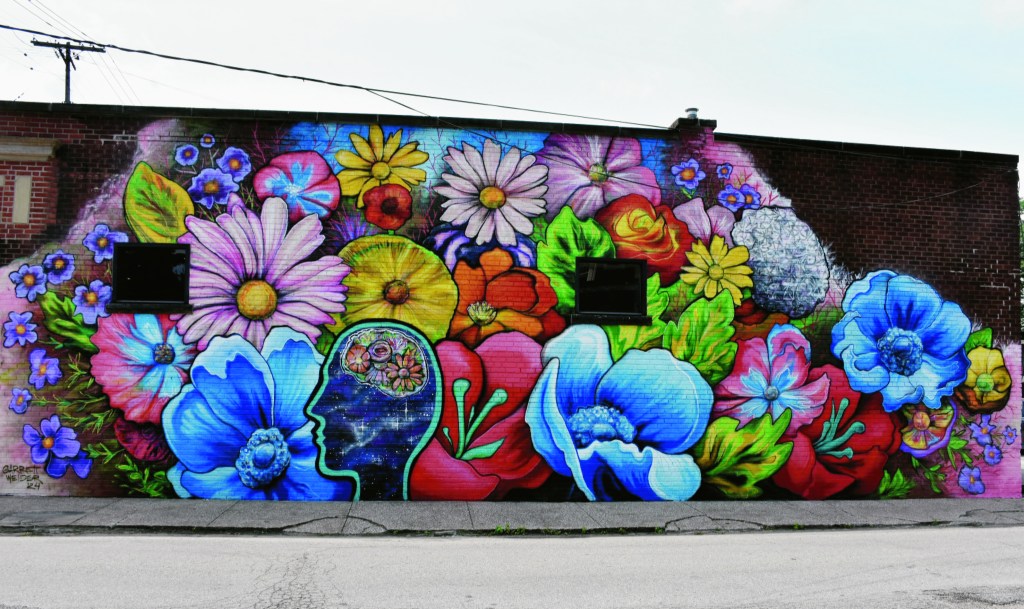 Sunday, July 21, 2024; Terrapin Bakery at the corner of W. 14th Street and Rowley Ave.: This floral mural by artist Garrett Weider on the side of the Terrapin Bakery in Tremont was recently unveiled and dedicated. This mural is a result of a partnership between LifeAct’s Mural for Mental Health and the building owner, Urban Orchid Tremont.