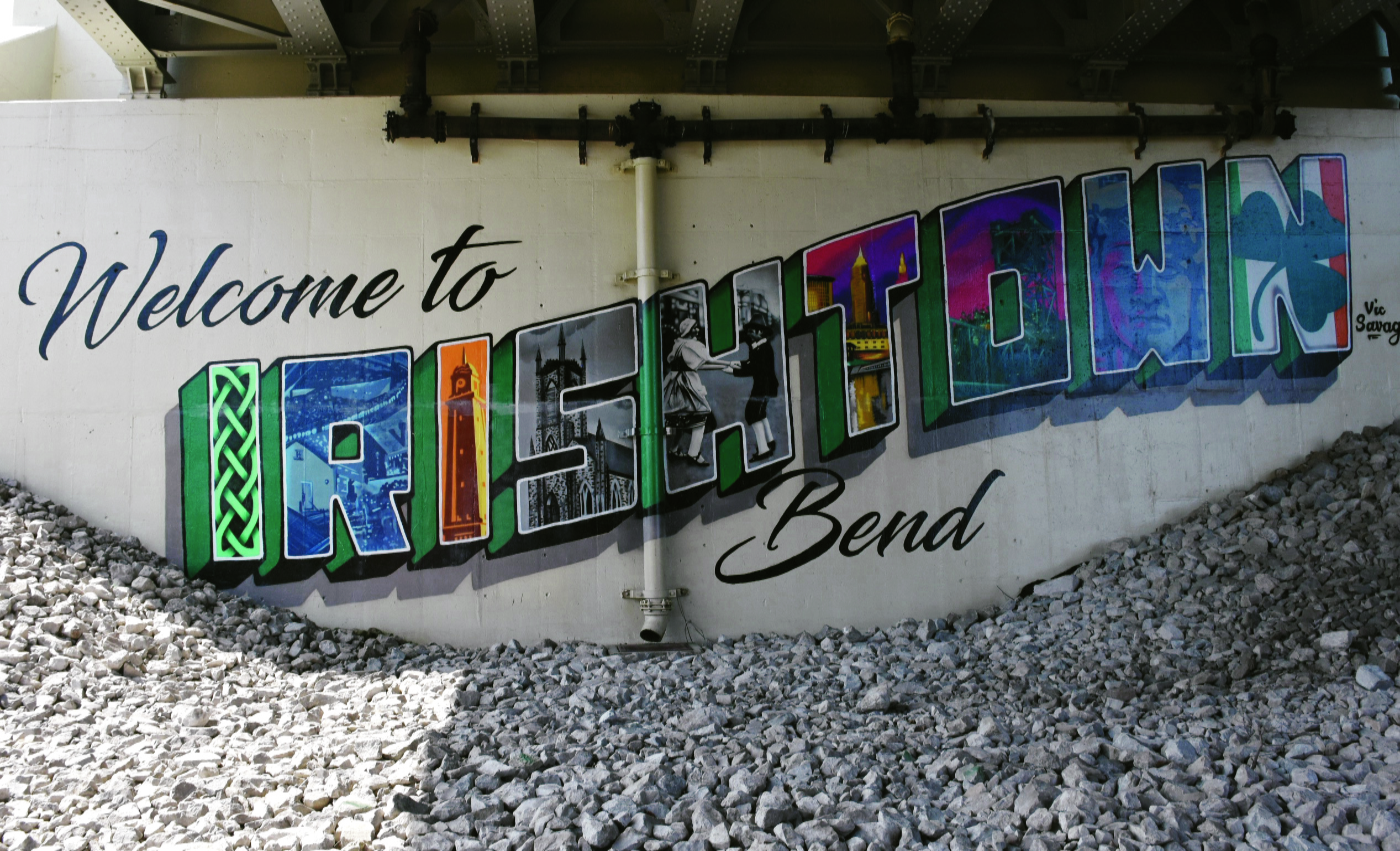 Sunday, July 21, 2024; Under the RTA Red Line transit bridge, next to the Redline Greenway: This colorful new mural showcasing the history of the Irishtown Bend area, was recently unveiled. The mural is accessible from Hoopples Bar, which is at the corner of Franklin Ave. and Columbus Rd. It was made possible by the Irishtown Bend Block Club in partnership with Graffiti HeArt and featured artist, Vic Savage.