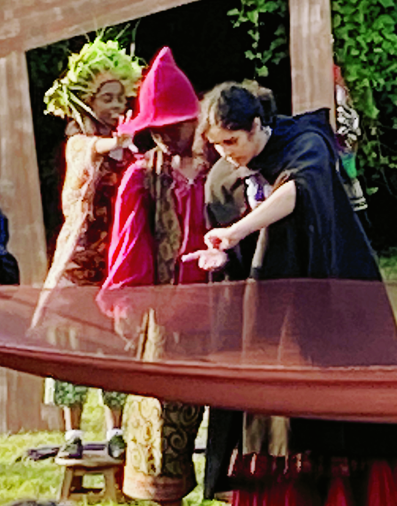Thursday July 25, 2024; Herman Park, 6198 Herman Avenue: (L-R) Actors Shaneya Berkley, William Willis and Eva Vergez perform in Cleveland Public Theatre’s Student Theatre Enrichment Program performance of Carved, an adaptation of Carlo Collodi’s Pinocchio.