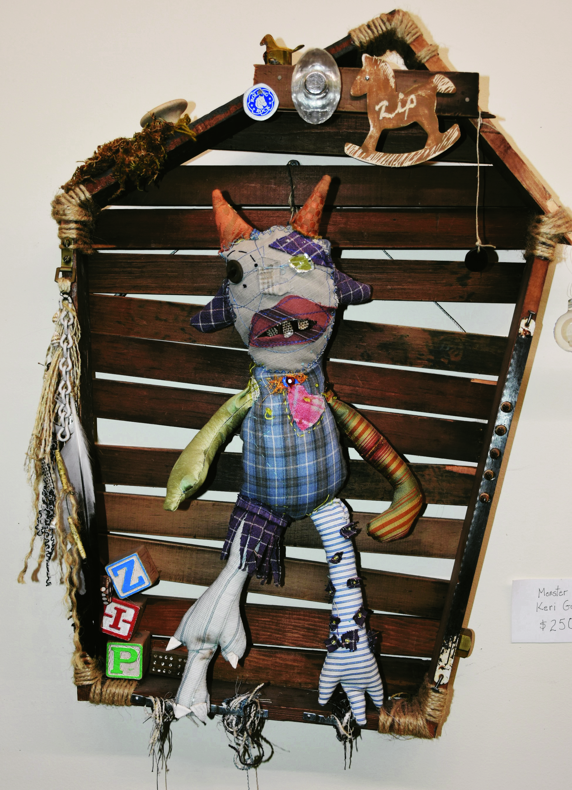 Friday, August 15, 2025; W. 78th Street Studios: Sculpture by Keri Gortz titled Monster Zip.