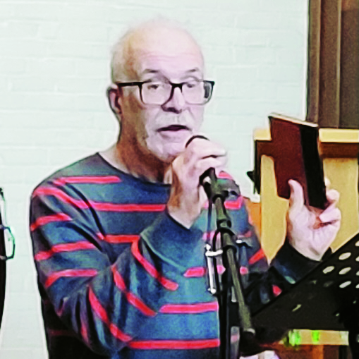 Saturday, February 14, 2026; Street Studio, St. Paul’s Community Church, 4427 Franklin Avenue: Mike Fiala, a regular attendee at St. Paul’s monthly Street Studio, recites some poetry. April’s Street Studio will be held on Saturday April 25th. See the Community Board for more information.