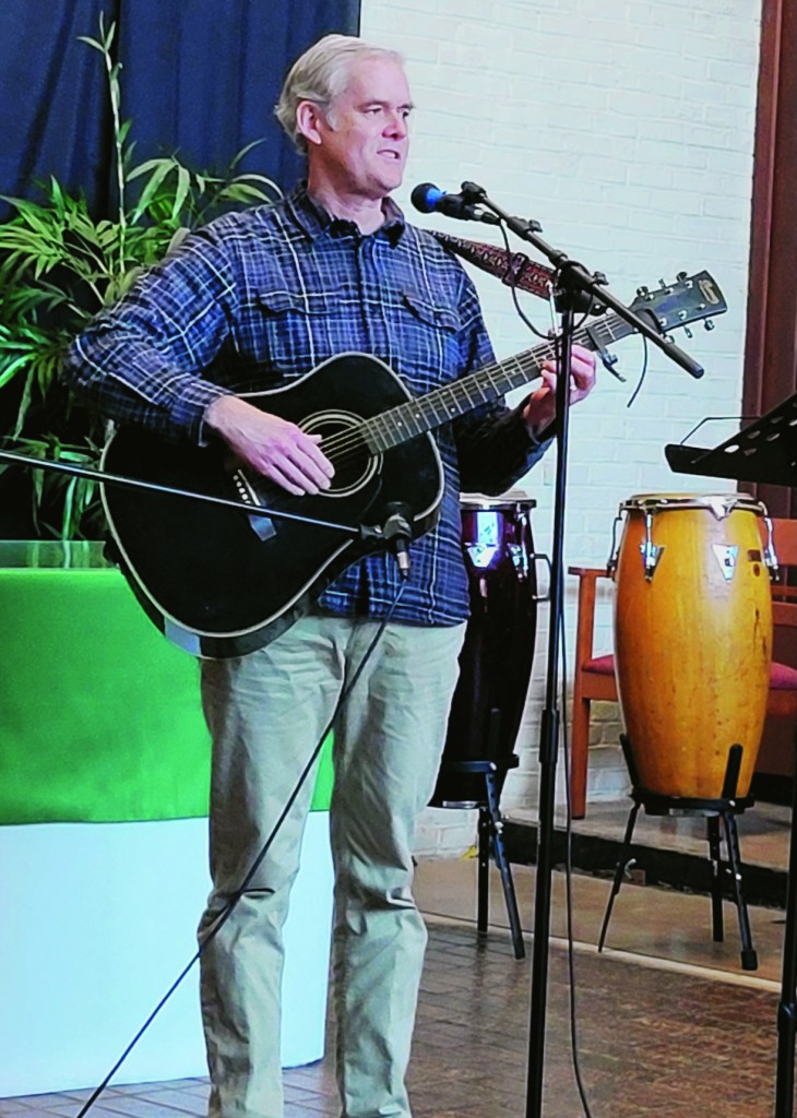 Saturday, February 14, 2026; Street Studio, St. Paul’s Community Church, 4427 Franklin Avenue: Guitar player Matt Rossman plays some tunes for those attending the Street Studio.